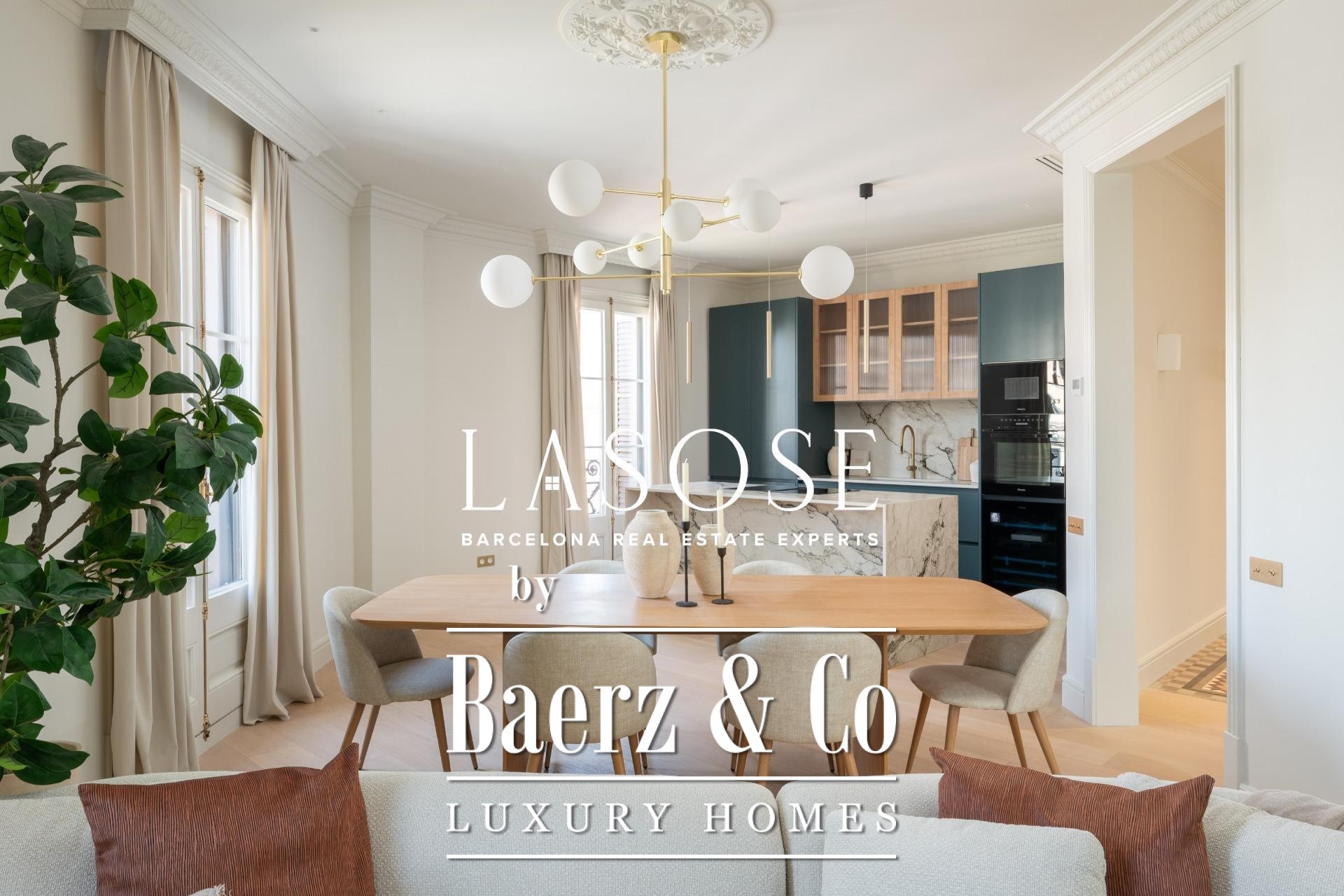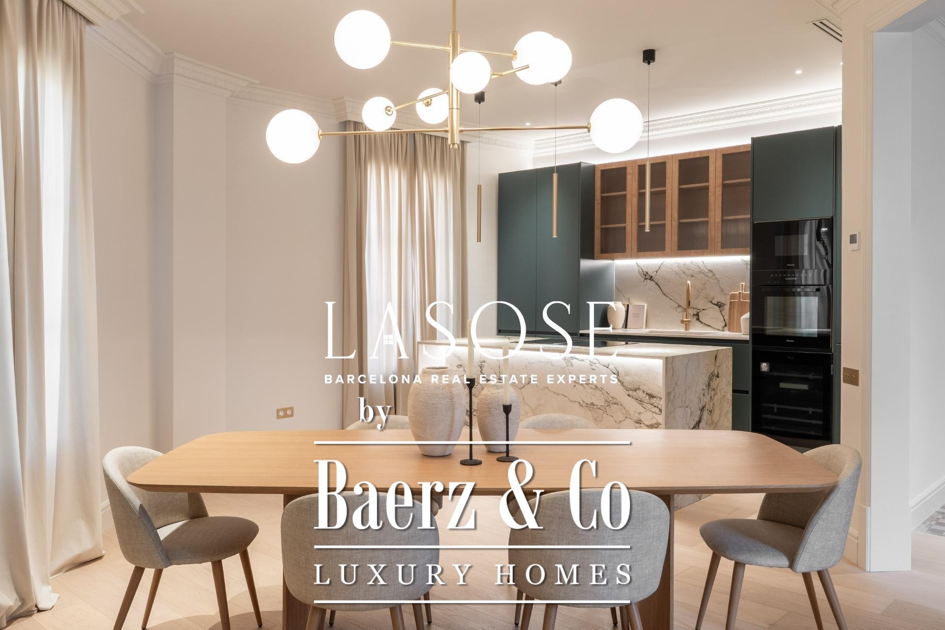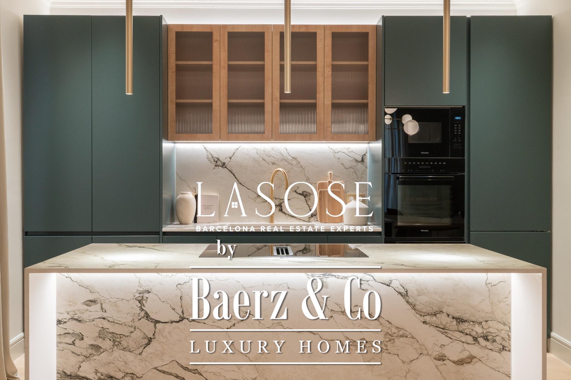 El ático ha sido completamente renovado con materiales de alta gama, conservando elementos originales como los suelos hidráulicos y la carpintería de madera. El interior alberga tres dormitorios dobles (dos de ellos en suite) y tres baños completos. La amplia zona de salón-comedor se define por una cocina de diseño abierta con isla central, electrodomésticos Miele y Liebherr, encimeras Neolith y mobiliario lacado. Balcones, trastero y un espacio de lavandería independiente optimizan la vida diaria. El edificio dispone de ascensor y servicio de conserjería, reafirmando su compromiso con el confort y la seguridad.