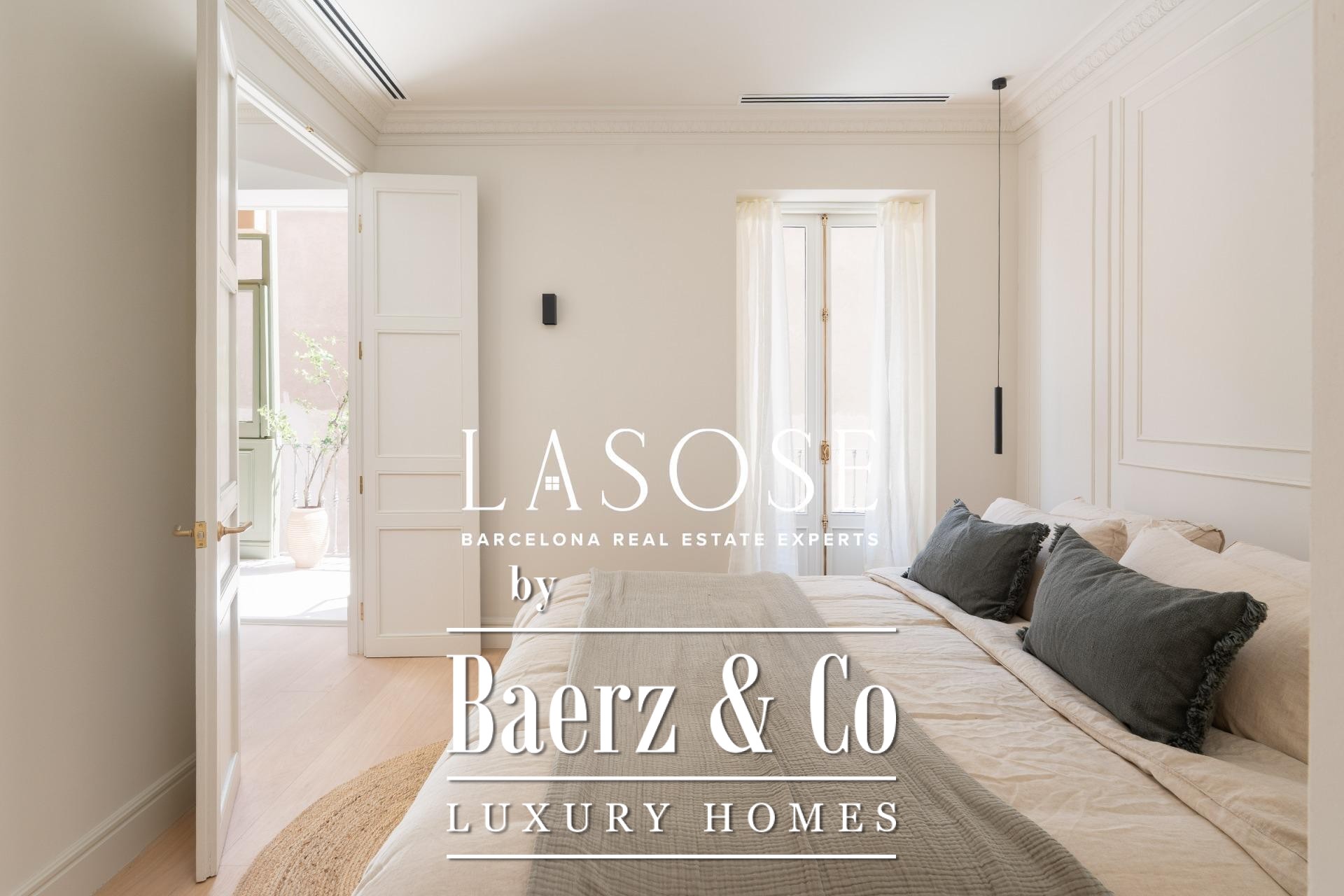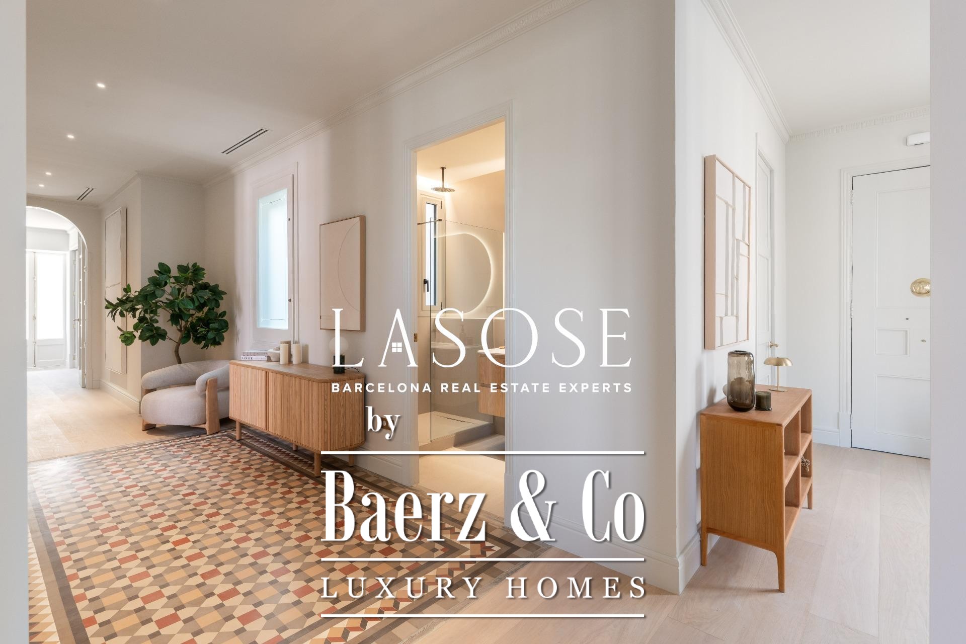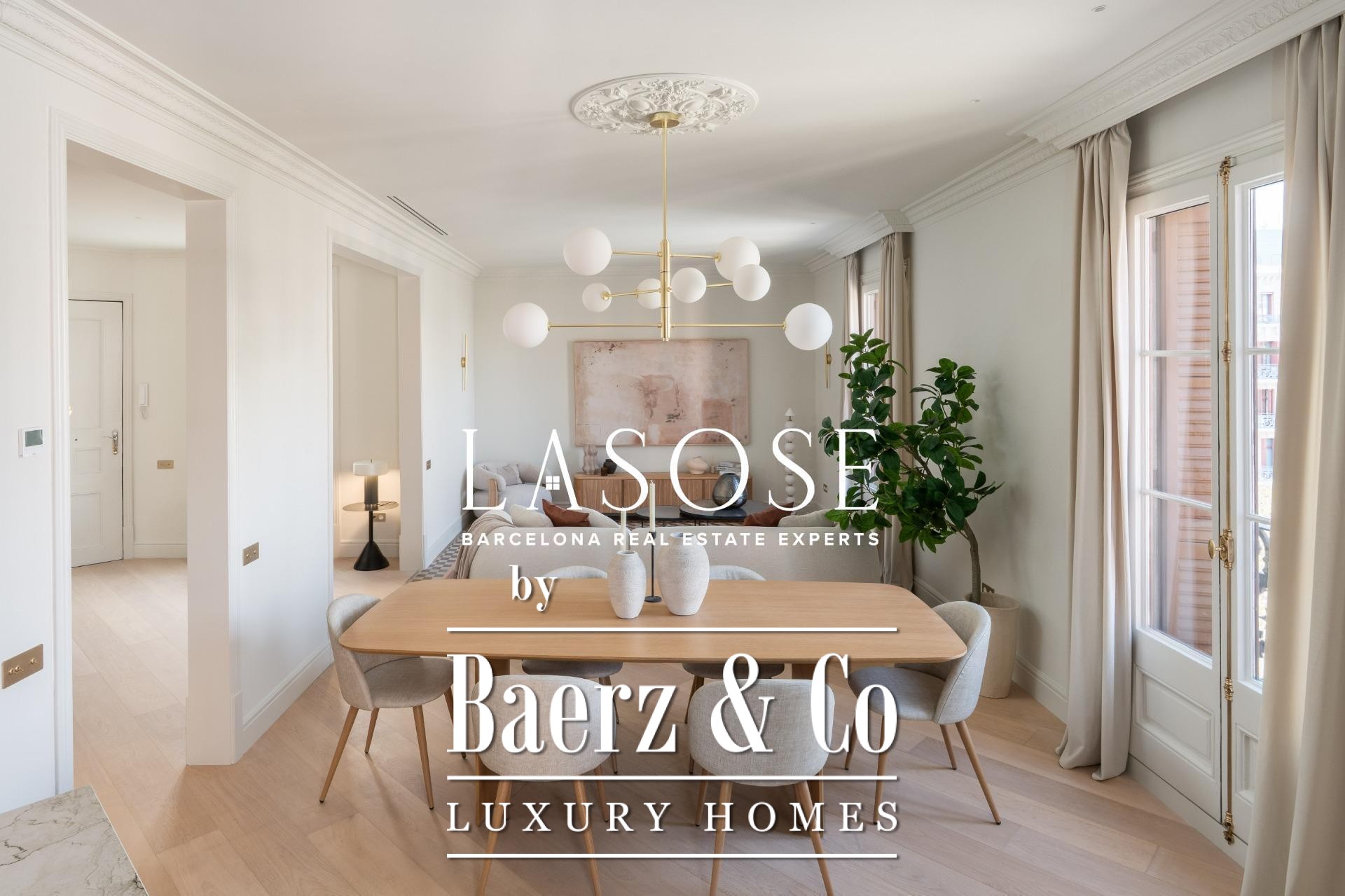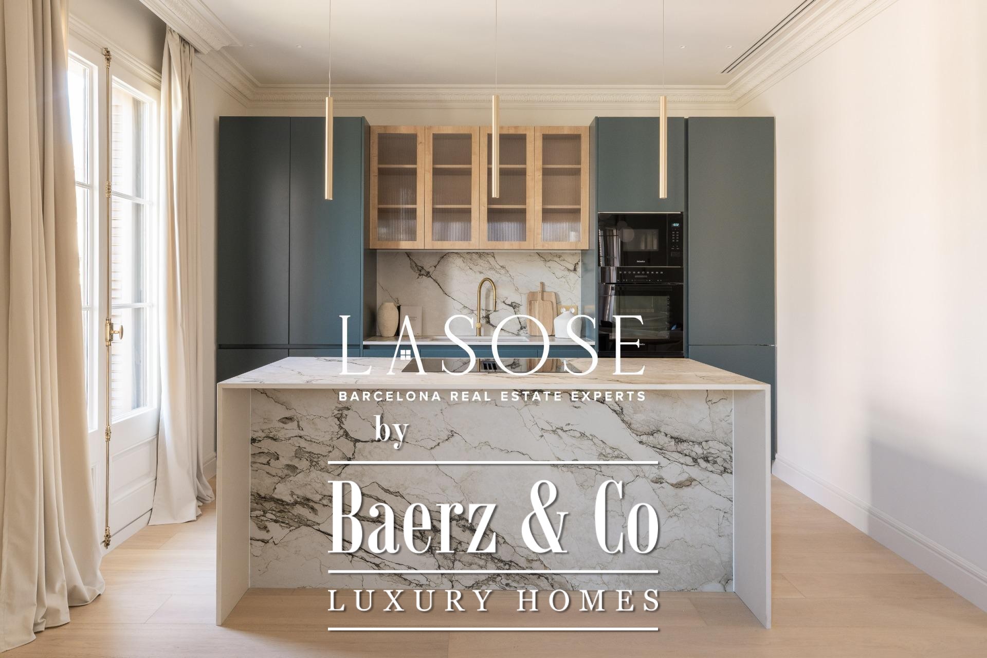 El ático ha sido completamente renovado con materiales de alta gama, conservando elementos originales como los suelos hidráulicos y la carpintería de madera. El interior alberga tres dormitorios dobles (dos de ellos en suite) y tres baños completos. La amplia zona de salón-comedor se define por una cocina de diseño abierta con isla central, electrodomésticos Miele y Liebherr, encimeras Neolith y mobiliario lacado. Balcones, trastero y un espacio de lavandería independiente optimizan la vida diaria. El edificio dispone de ascensor y servicio de conserjería, reafirmando su compromiso con el confort y la seguridad.