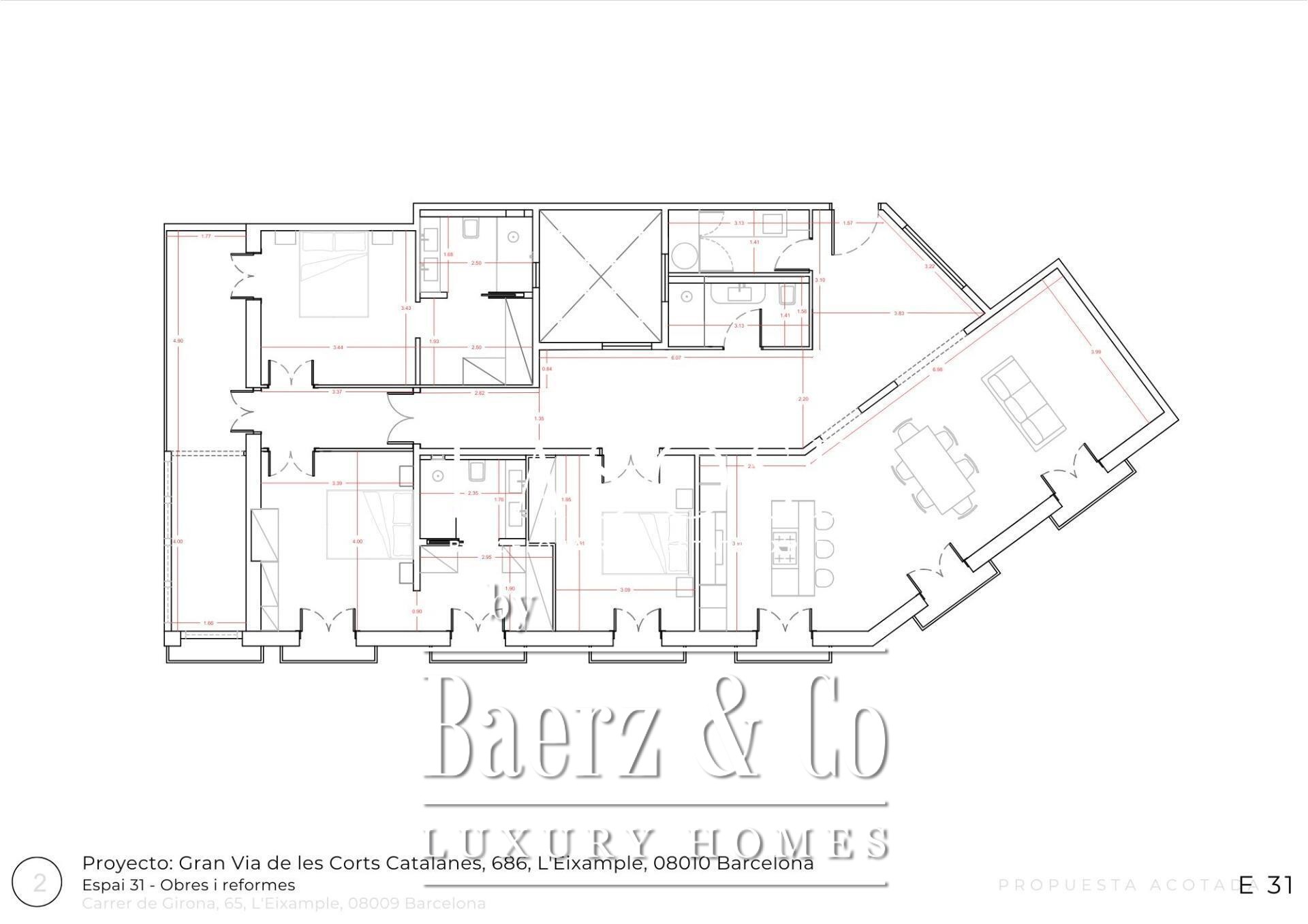 El ático Barcelona Quadrat d'Or se sitúa en la codiciada intersección de la Calle Girona con la Gran Via de les Corts Catalanes, ofreciendo 201 m² de elegante espacio habitacional complementado por una terraza de 20 m². Esta residencia fusiona historia y diseño contemporáneo, a unos pasos del Passeig de Gràcia y la Plaça Catalunya. Rodeado de hoteles, teatros, restaurantes, colegios, tiendas exclusivas y con excelente conexión de transporte público, le sitúa en el corazón del emblemático Quadrat d'Or de Barcelona.