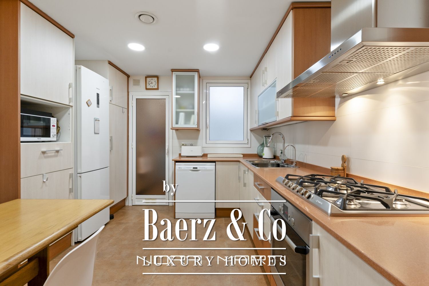 La terraza de 15 m² brinda un espacio exterior tranquilo para relajación privada o comidas al aire libre, integrando el entorno natural en la vida diaria. La cocina con office es práctica y está perfectamente equipada, concebida para facilitar el ritmo cotidiano. Una zona de lavandería independiente añade organización y comodidad al hogar.