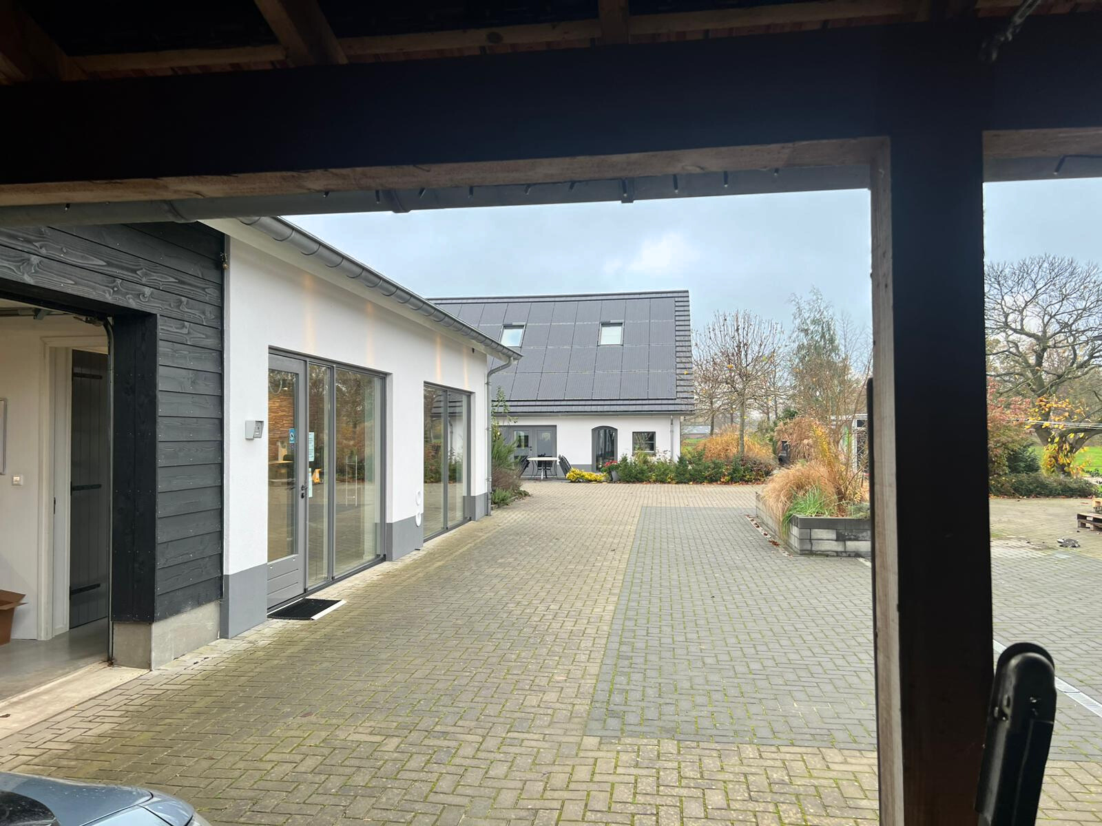 Dispone de tres dormitorios y dos baños, todos ellos cuidadosamente equipados. Los acabados incluyen calefacción por suelo radiante, duchas walk-in, grifería Grohe Sphinx y espacios de almacenaje en toda la vivienda. El anexo, con 288 m² para oficina, almacenaje o actividades, incorpora conectividad por fibra óptica, garaje doble y cochera. Se pueden estacionar hasta seis vehículos en la zona pavimentada, con estación de carga de 22 kW.