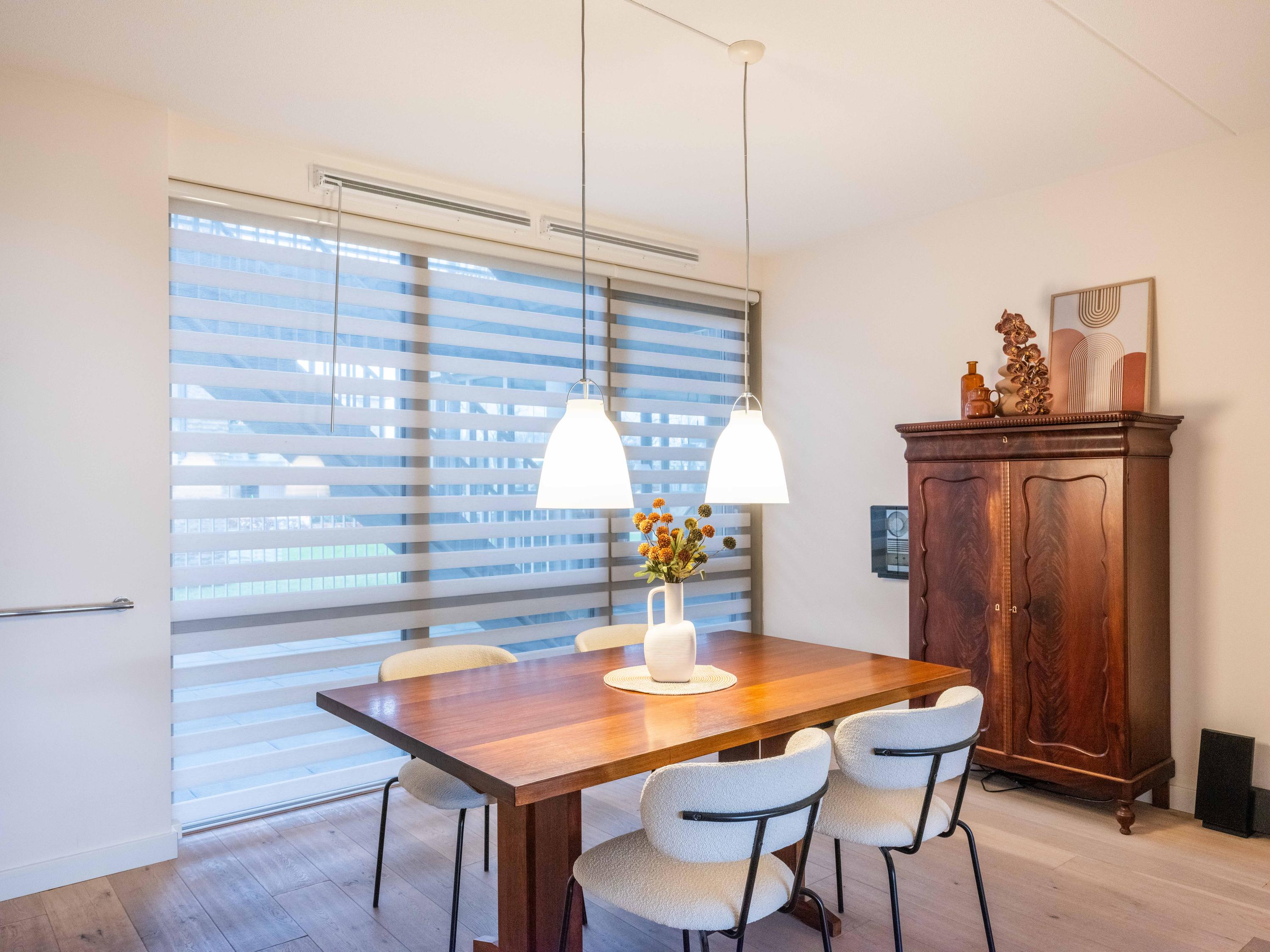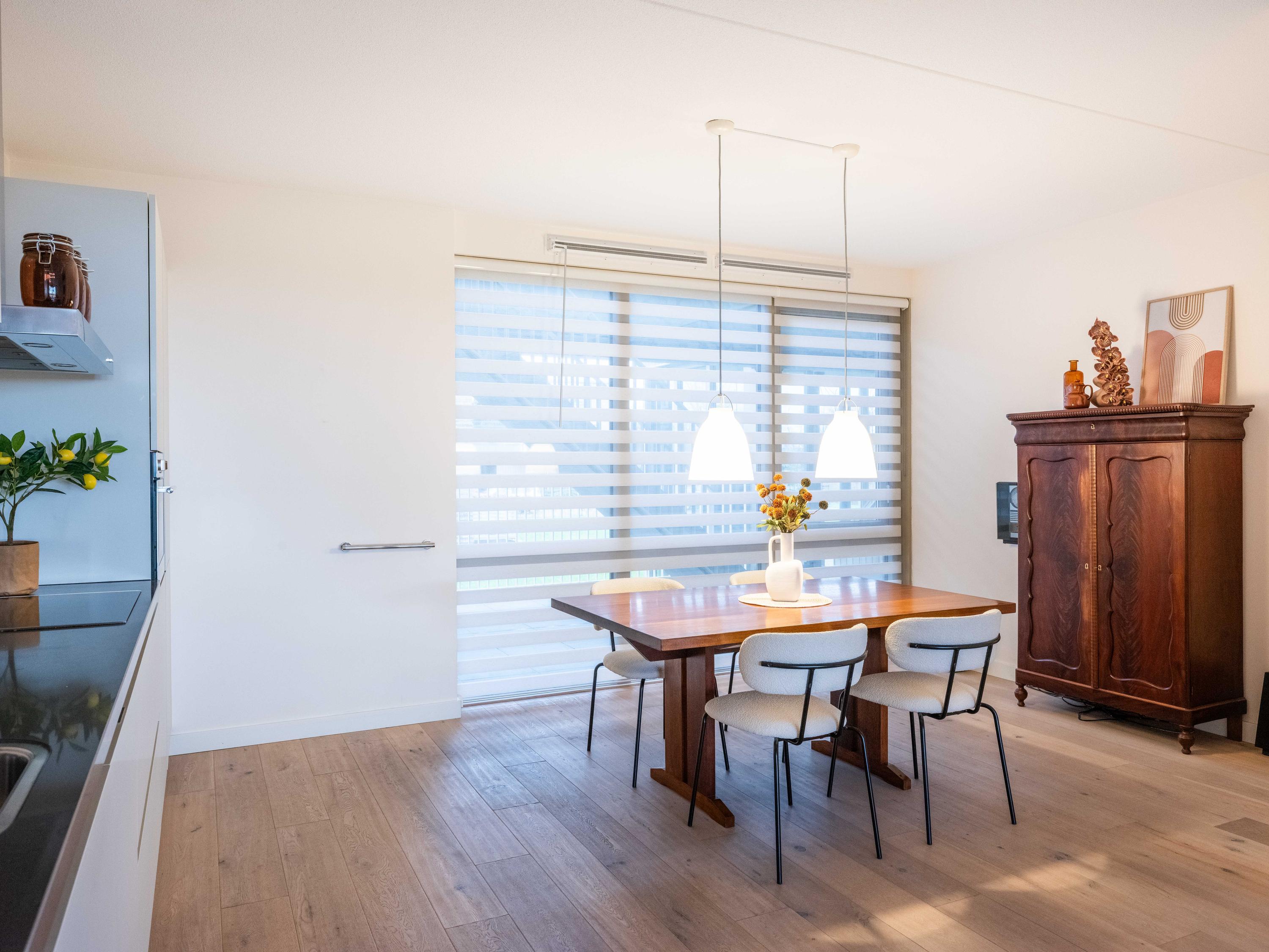 El apartamento Bergen NH le da la bienvenida a una dirección que destila tradición y elegancia contemporánea. Ubicada en la finca Merici, un nombre entrelazado con la identidad de Bergen, esta residencia ofrece privacidad junto a vistas panorámicas a los verdes pólderes y campos de flores desde la primera planta de un complejo íntimo. Este apartamento en Bergen NH, con una superficie habitable de 109 m², presenta una distribución cuidadosamente diseñada: un recibidor generoso da paso al salón, dos dormitorios, una cocina abierta moderna con electrodomésticos integrados y un baño lujoso con doble lavabo, ducha a ras de suelo y aseo. La calefacción por suelo radiante, acristalamiento doble HR++ y una bomba de calor de última generación garantizan confort todo el año, cumpliendo con los estándares de eficiencia energética de clase A.