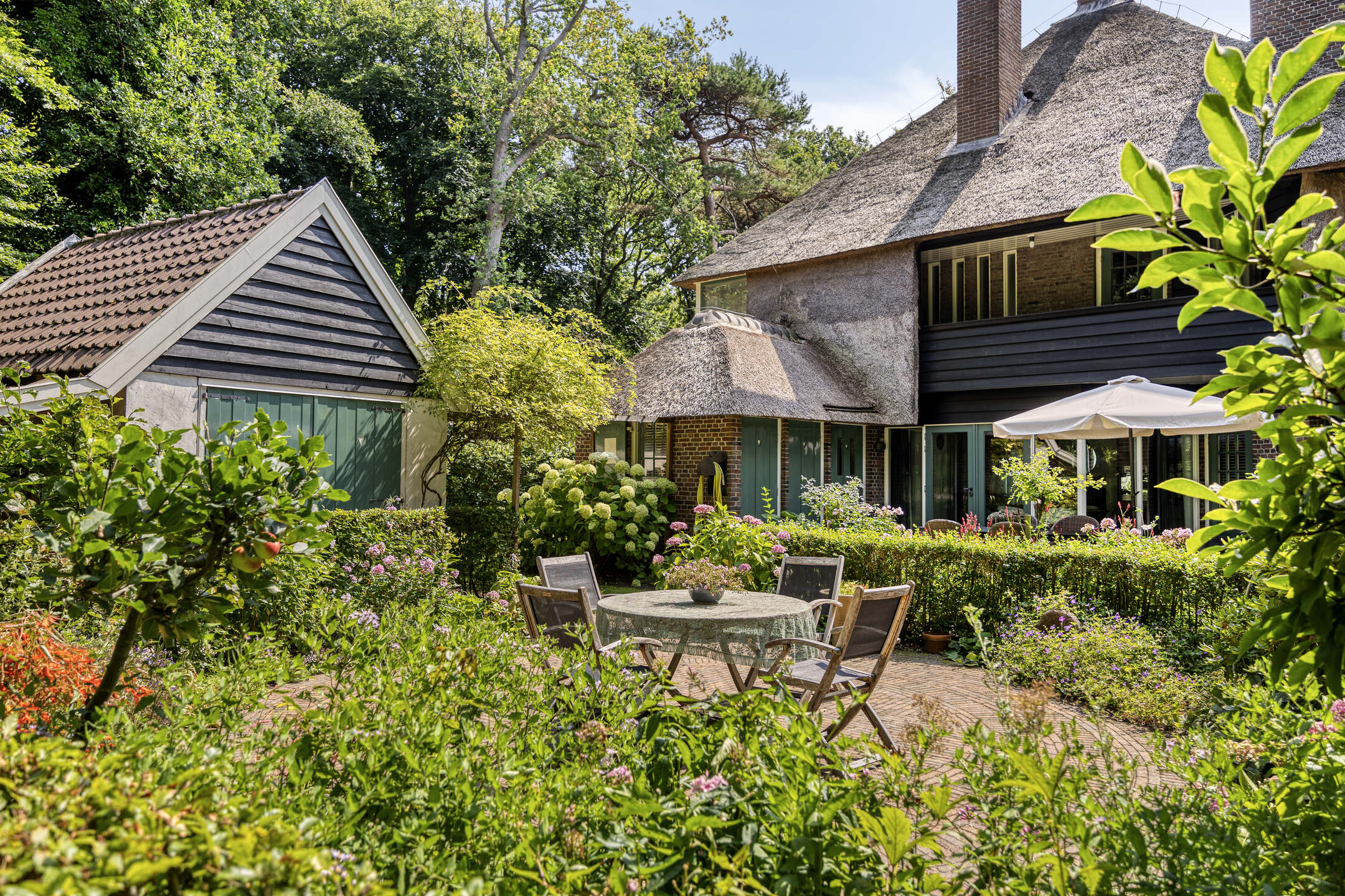 Al llegar por una amplia entrada privada, el tejado de paja y la mampostería original causan una impresión inmediata. El interior se distingue por sus suelos de roble macizo, chimeneas originales y armarios diseñados en época, conservando la sensación histórica e integrando el confort contemporáneo. La cocina, equipada con electrodomésticos Bosch y AEG, se abre a una terraza soleada y profundos jardines paisajísticos. Las zonas de servicio, el salón con ventana de bahía y la sala de televisión enfatizan la fluidez espacial y la luz, con calefacción por suelo radiante en zonas seleccionadas.