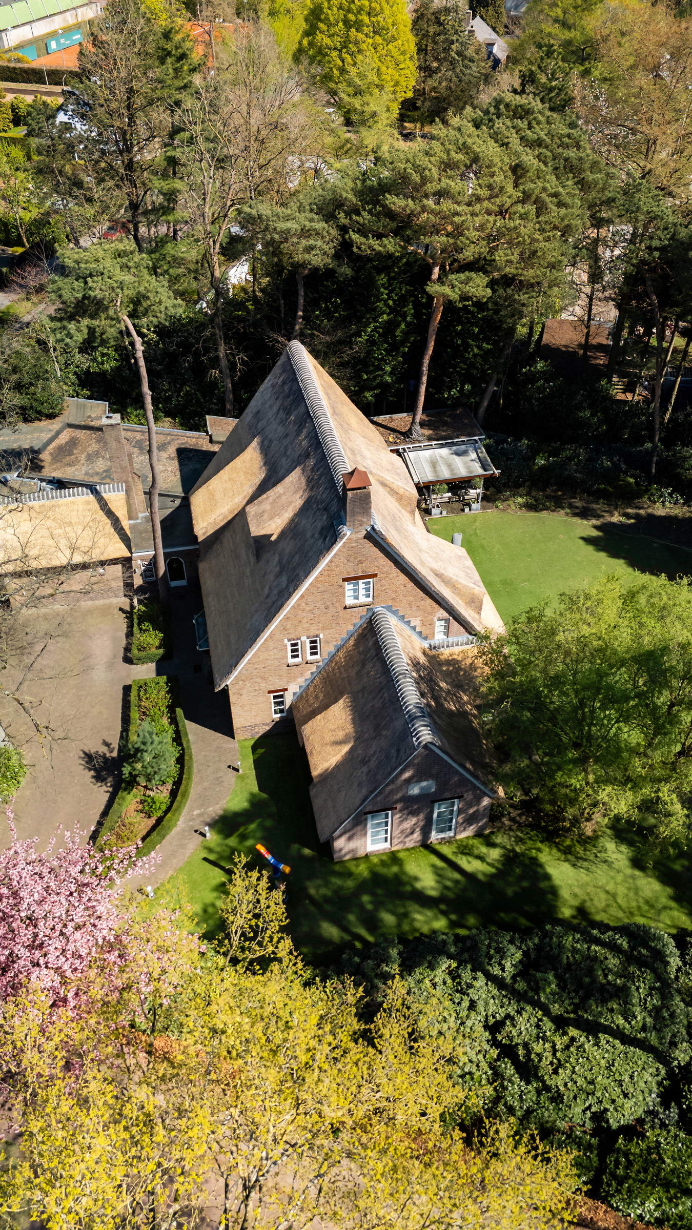 Villa Breda es una amplia casa de campo situada en una parcela arbolada de 2.830 m² en el distinguido barrio de Ruitersbos, donde la privacidad se fusiona con una elegante tranquilidad. Esta villa ofrece 521 m² de espacio habitable, combinando sin fisuras los detalles originales de 1932 con una artesanía moderna. El techo de paja y las vidrieras reflejan su herencia, mientras que las renovaciones integrales garantizan el confort contemporáneo.