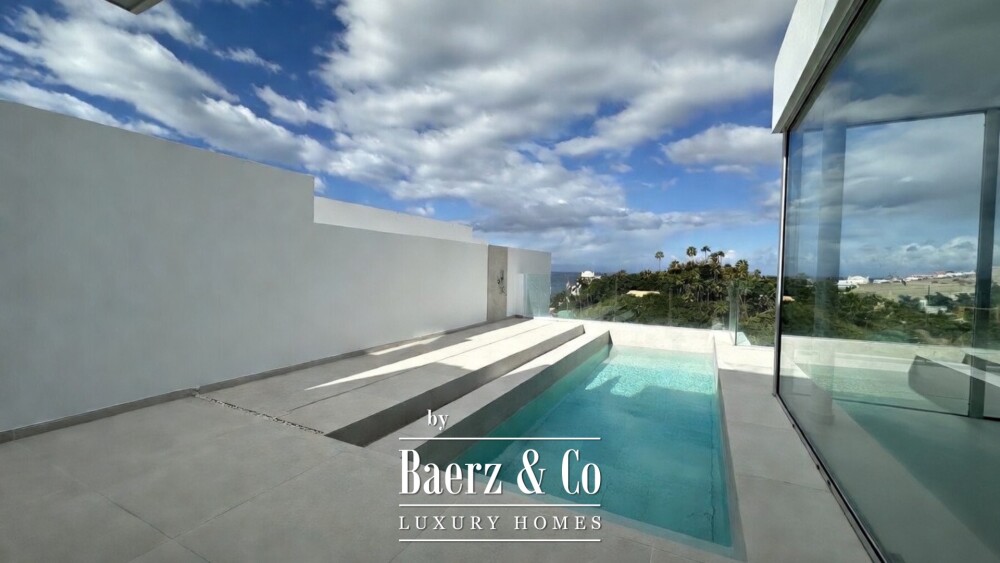 Una piscina privada de 7,5 x 3 metros, ducha exterior y una amplia terraza ofrecen una experiencia interior-exterior envolvente. En la planta inferior, una sala polivalente, dos dormitorios adicionales, dos baños completos y un cuarto de lavado independiente aportan versatilidad y comodidad. Zonas ajardinadas con plantas exóticas y palmeras envuelven la villa, favoreciendo un ambiente sereno y sofisticado.