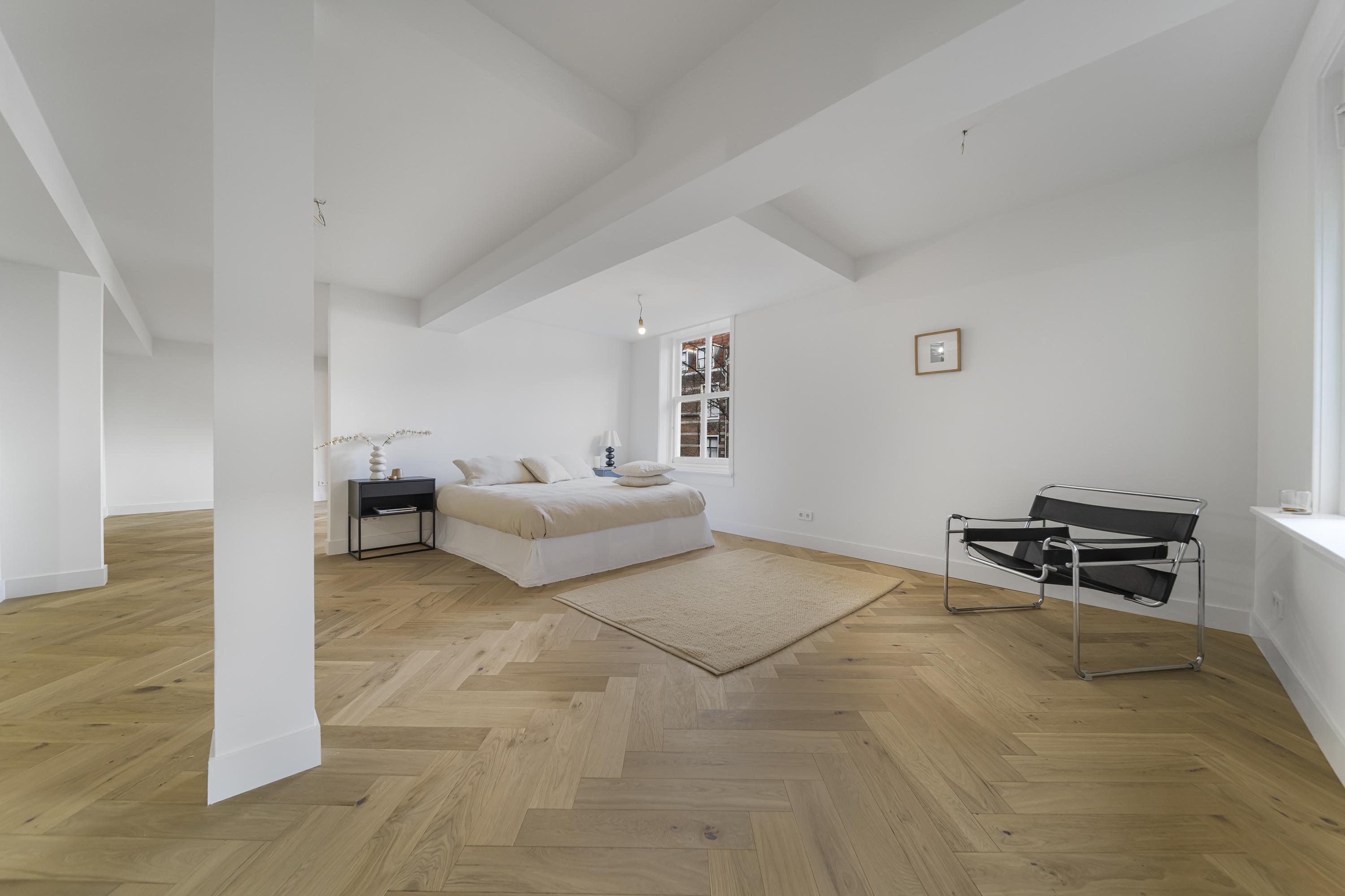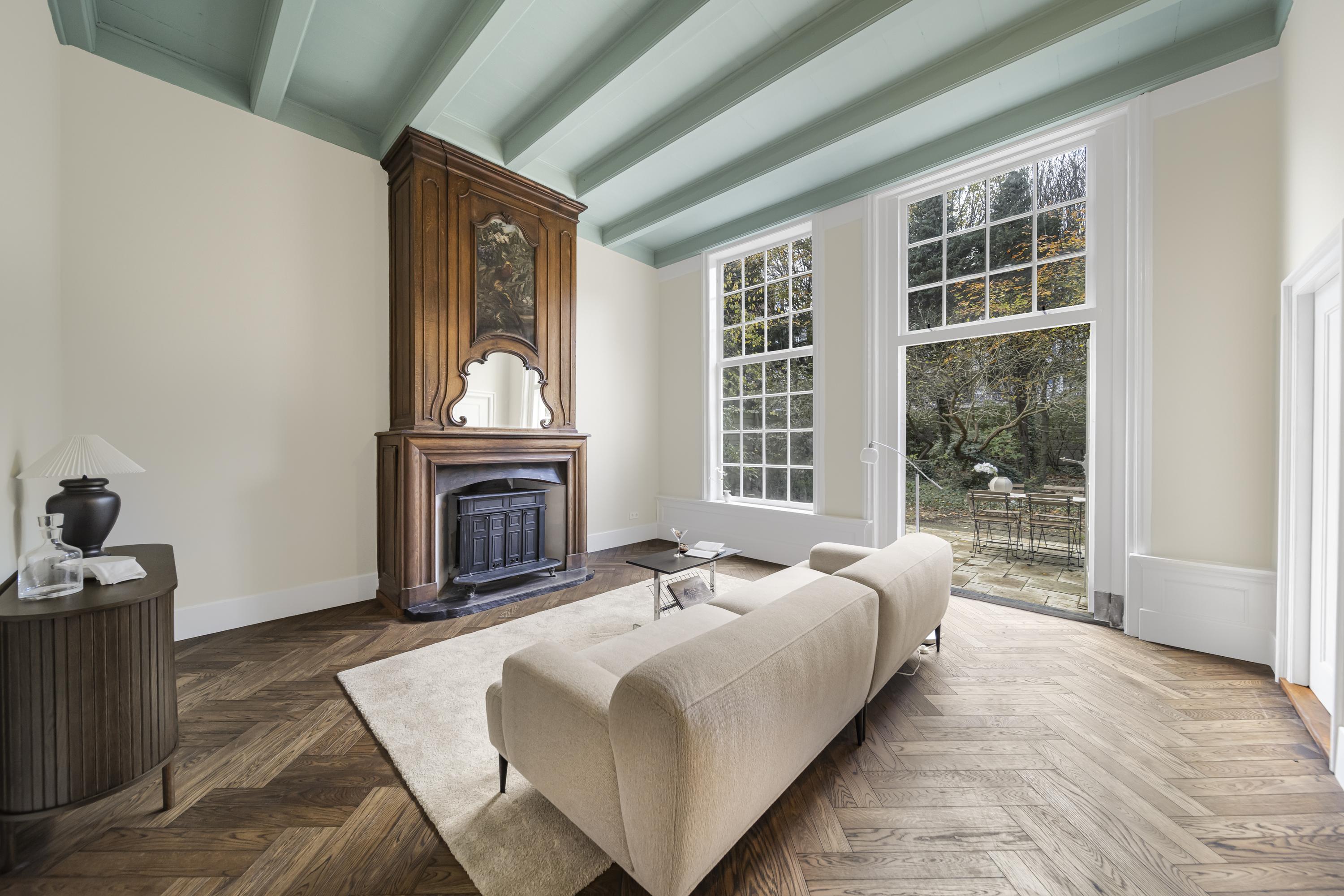 La disposición se extiende a lo largo de cuatro plantas. La planta baja presenta recibidores refinados con suelos de mármol en blanco y negro, espacios habitables y de trabajo flexibles, una luminosa sala de jardín y acceso a un jardín urbano privado en forma de L orientado al suroeste—un oasis poco común en el centro histórico de Delft. Seis dormitorios y cuatro baños distribuidos en las plantas superiores reciben abundante luz natural, además de contar con un altillo y una inspiradora estructura de techo.