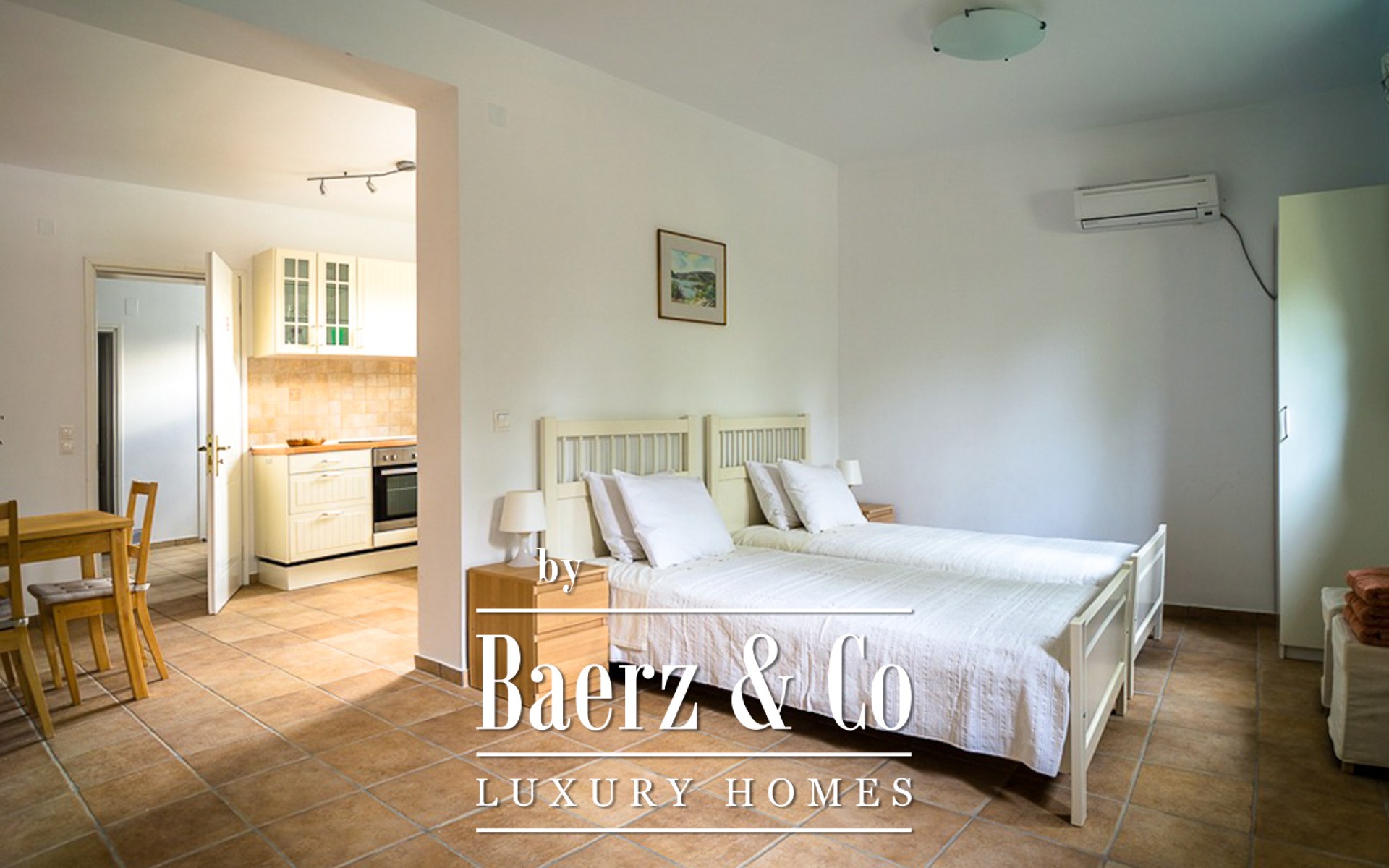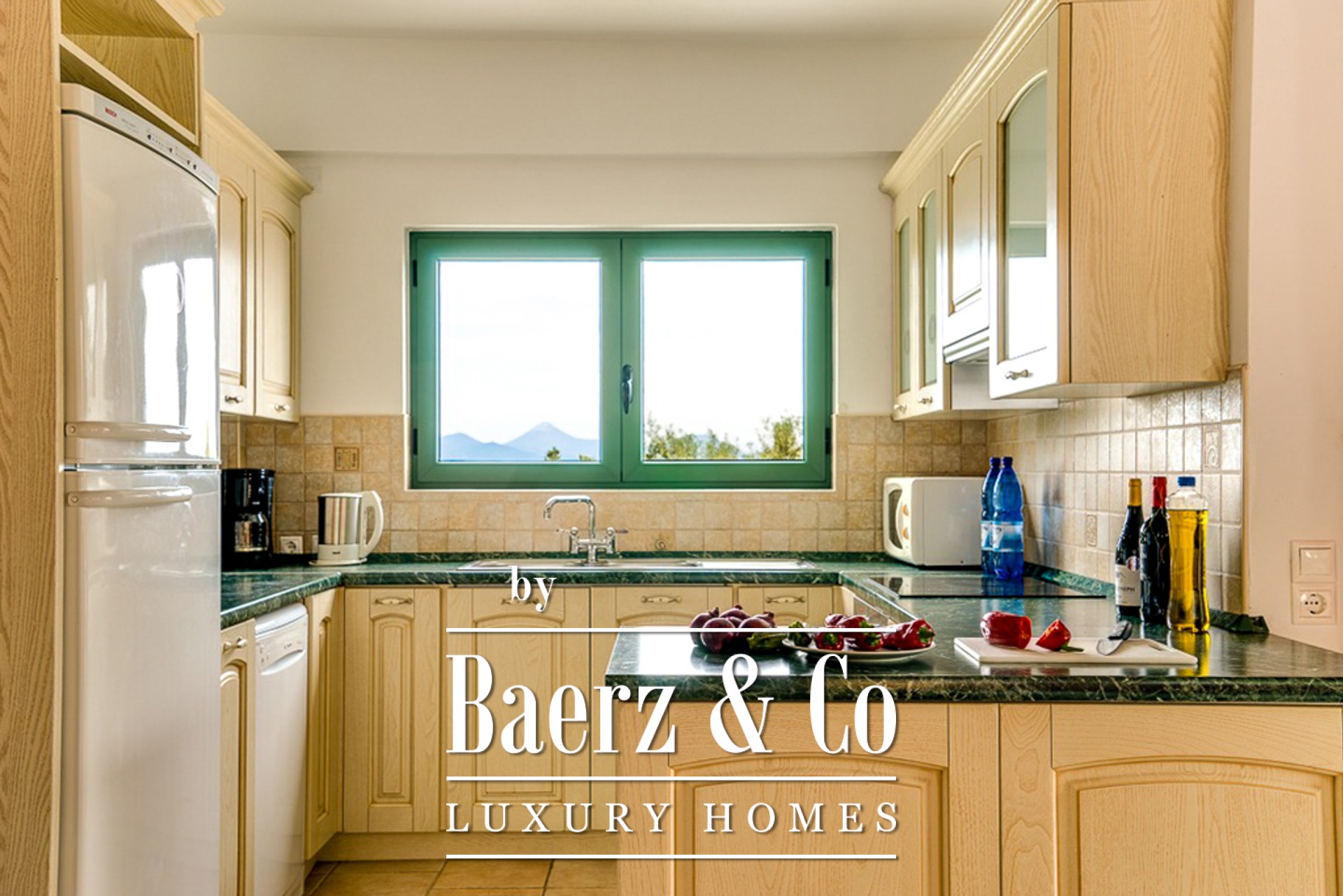 Entre las características distintivas se incluyen calefacción por suelo radiante en áreas seleccionadas, aire acondicionado en todos los dormitorios y en el apartamento de invitados, escalera de granito, chimenea y cocina completamente equipada. Ofrece tres plazas de aparcamiento privadas y dos compartidas, integradas en una estructura de copropiedad legalmente definida. El entorno de la villa es tranquilo y accesible, con camino pavimentado y vistas despejadas a la montaña y la naturaleza, lo que refuerza la sensación de amplitud. Ideal como residencia privada o para actividad de alquiler, Villa Ellomeno ofrece calidad atemporal y un diseño cuidadosamente concebido en la costa jónica.