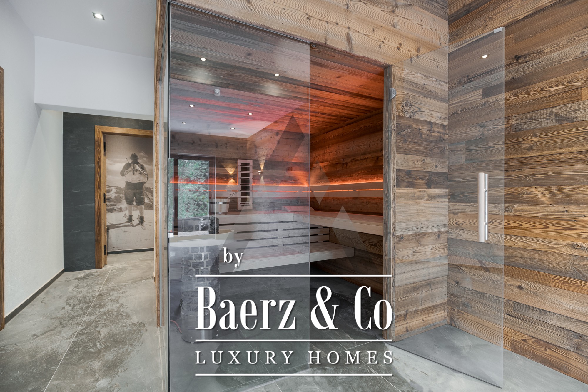 Las fachadas de vidrio de suelo a techo en la amplia zona de estar y comedor de 70 m² se abren al paisaje, mientras que la piedra natural y la madera envejecida subrayan la elegancia atemporal del exterior. La cocina profesional está equipada con electrodomésticos Gaggenau y Bora Professional, ideal para los amantes de la gastronomía. Una exclusiva área de bienestar con sauna y zona de relax invita a la restauración, sumada a comodidades cuidadosamente seleccionadas como ascensor, chimenea, sistema BUS y aparcamiento tanto subterráneo como exterior.