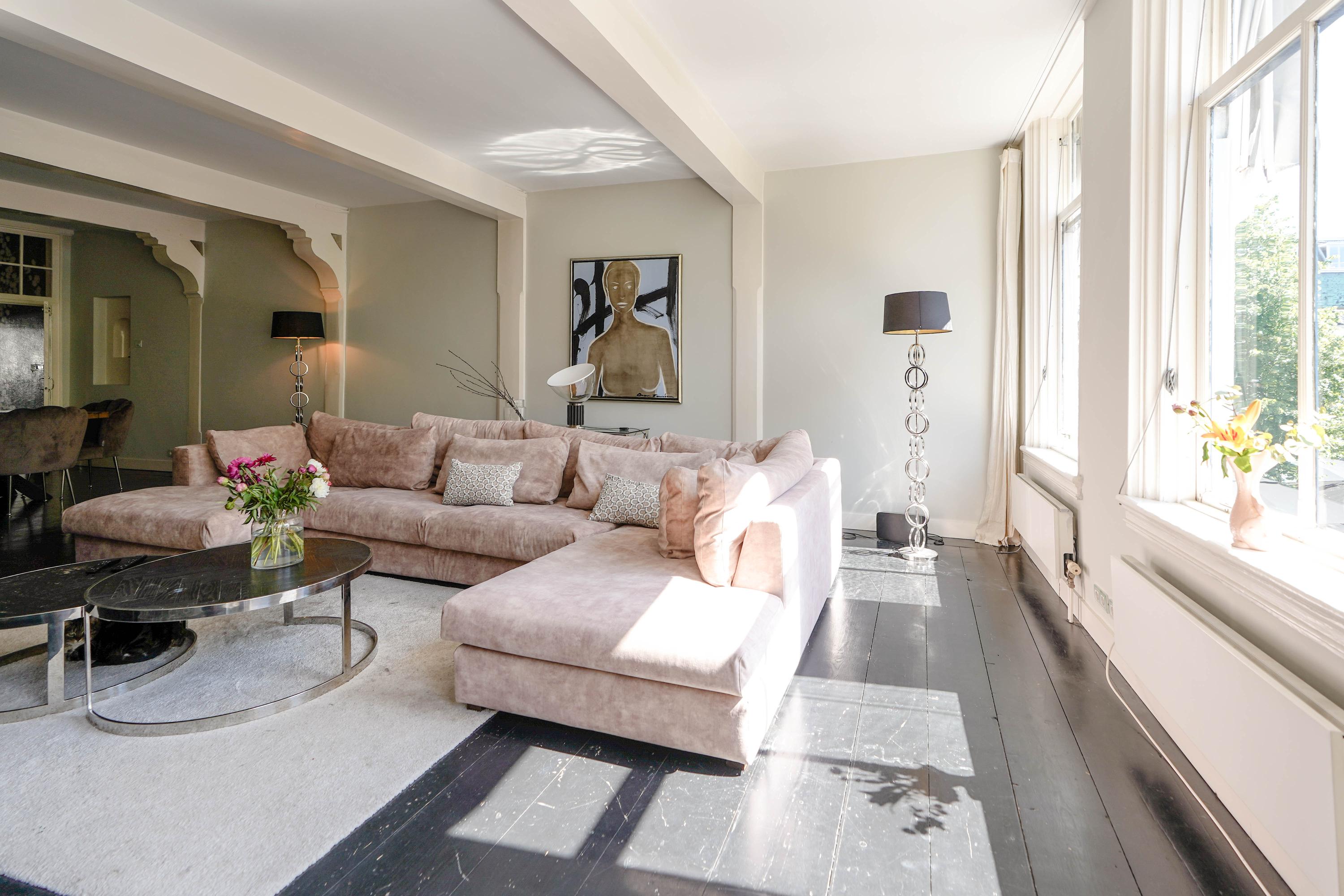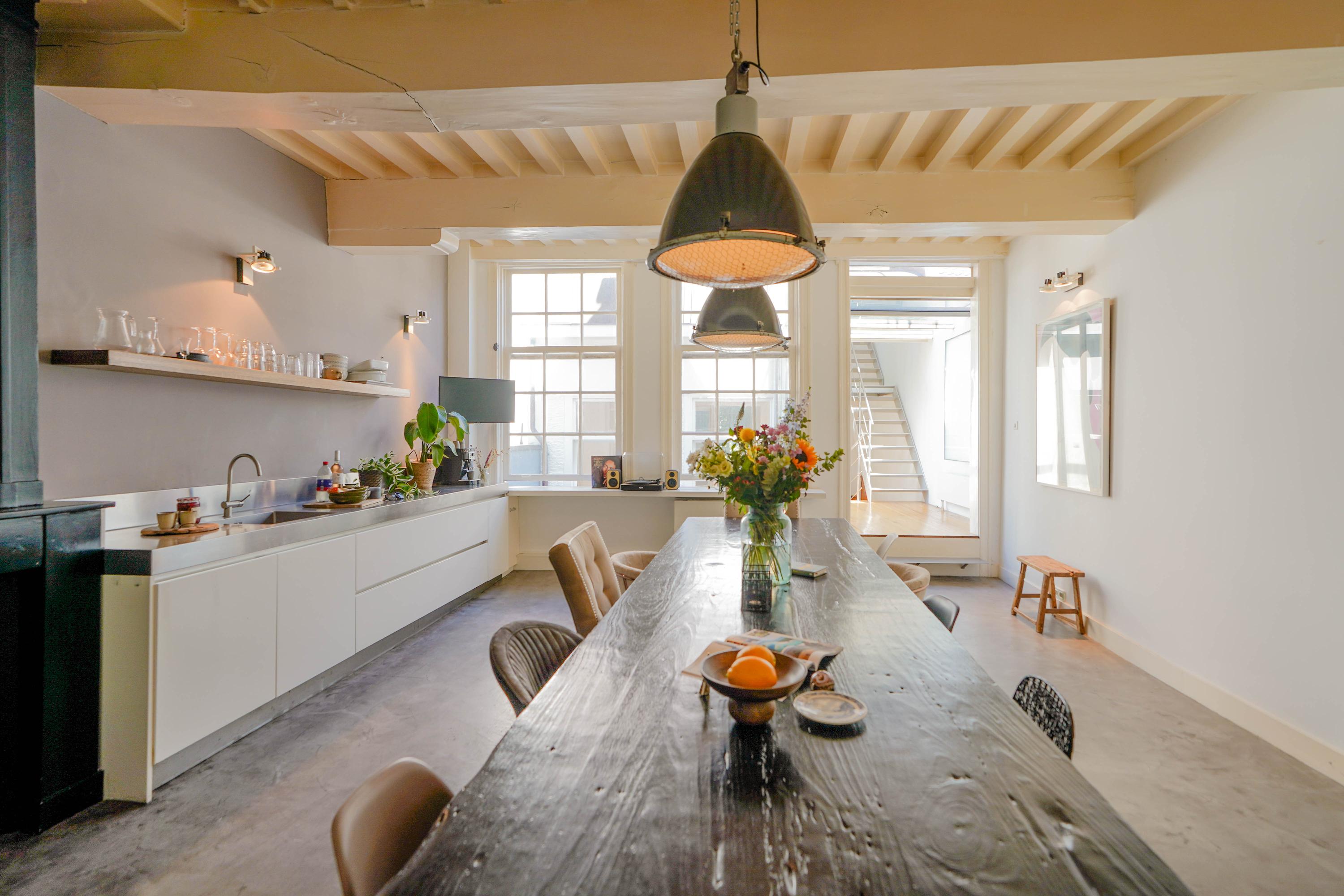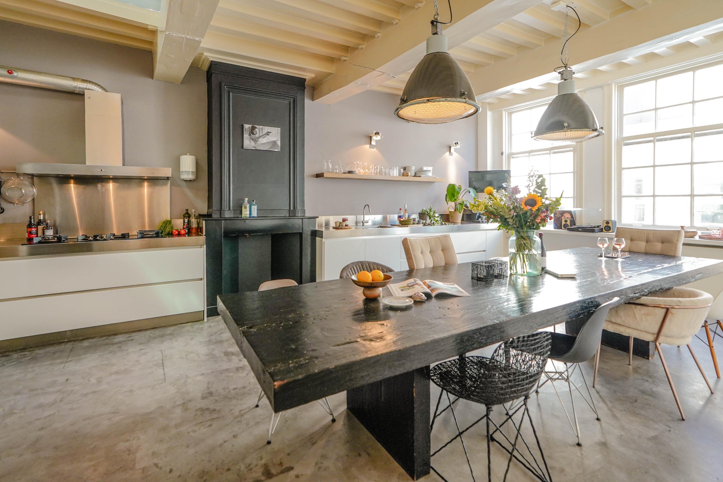 La primera planta acoge un salón de 70 m² con vistas al Rin y a la plaza Stadhuisplein, y una magnífica cocina-comedor de 50 m² con amplias encimeras y una mesa para doce personas, perfecta para reuniones y comodidad diaria. Los dormitorios se distribuyen en las plantas superiores, con siete habitaciones y tres baños; todos cuentan con grandes ventanales, armarios empotrados y espacio para ropa blanca, incluyendo una suite principal con baño privado bajo techos abuhardillados de gran presencia.