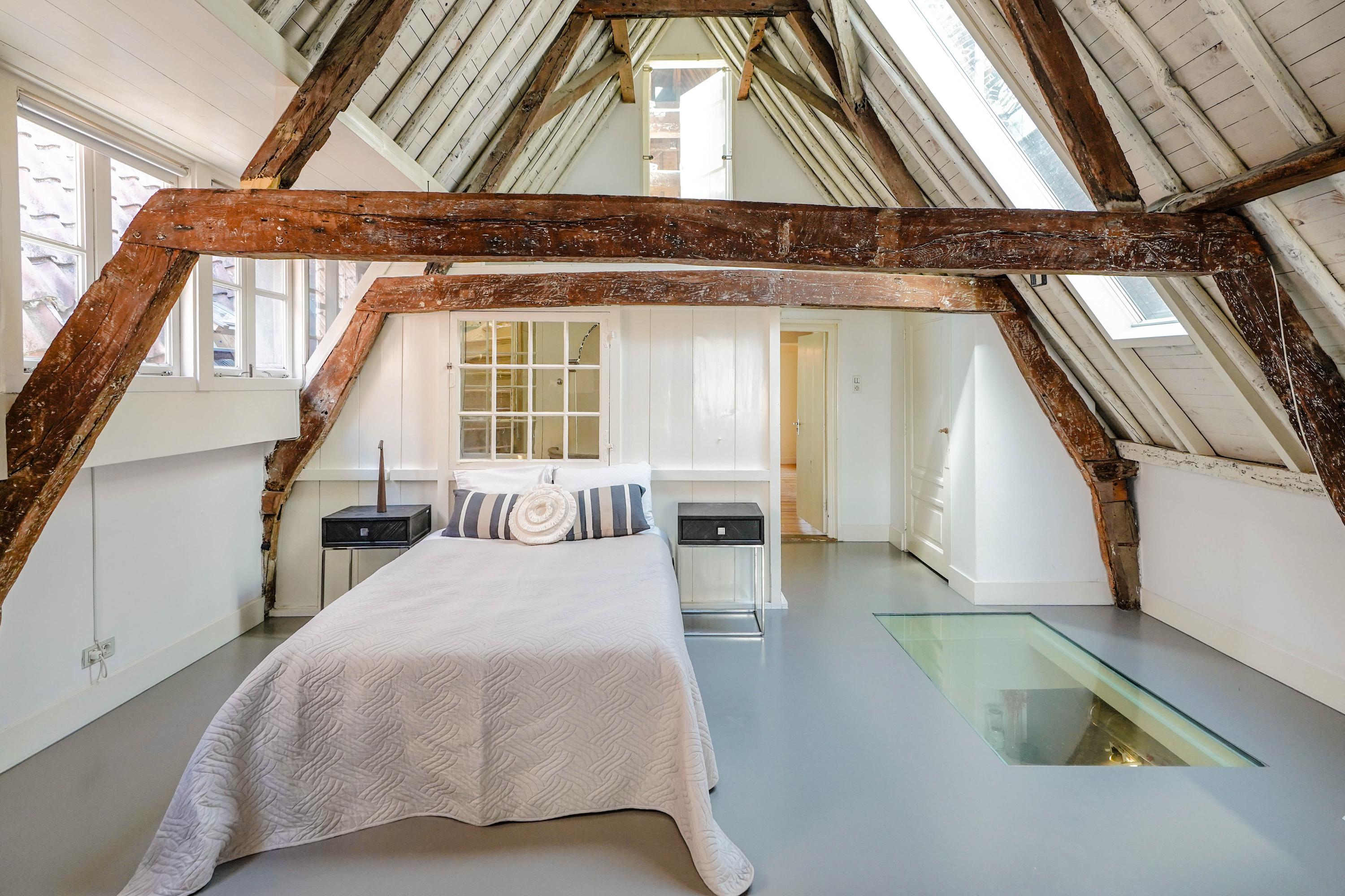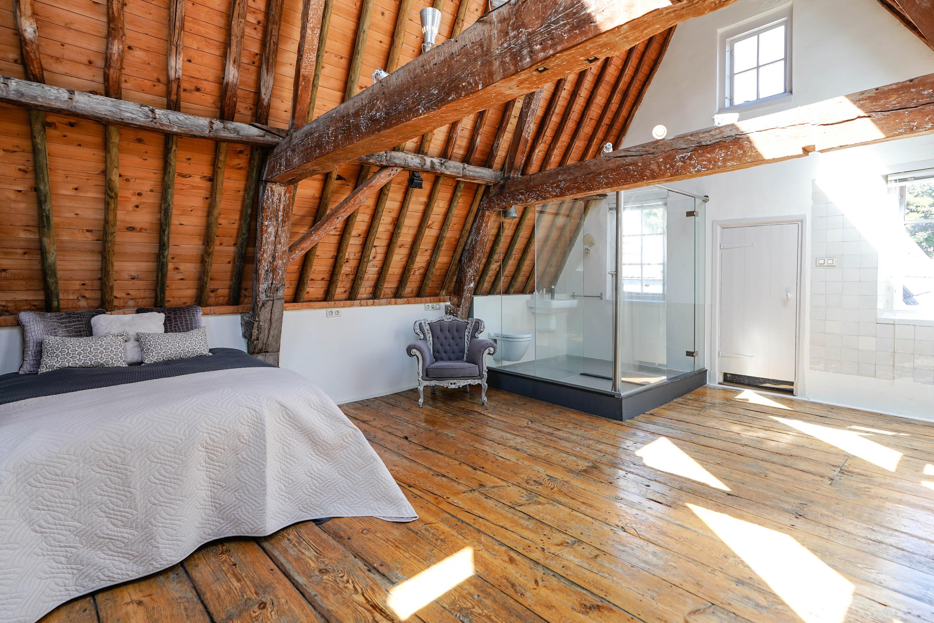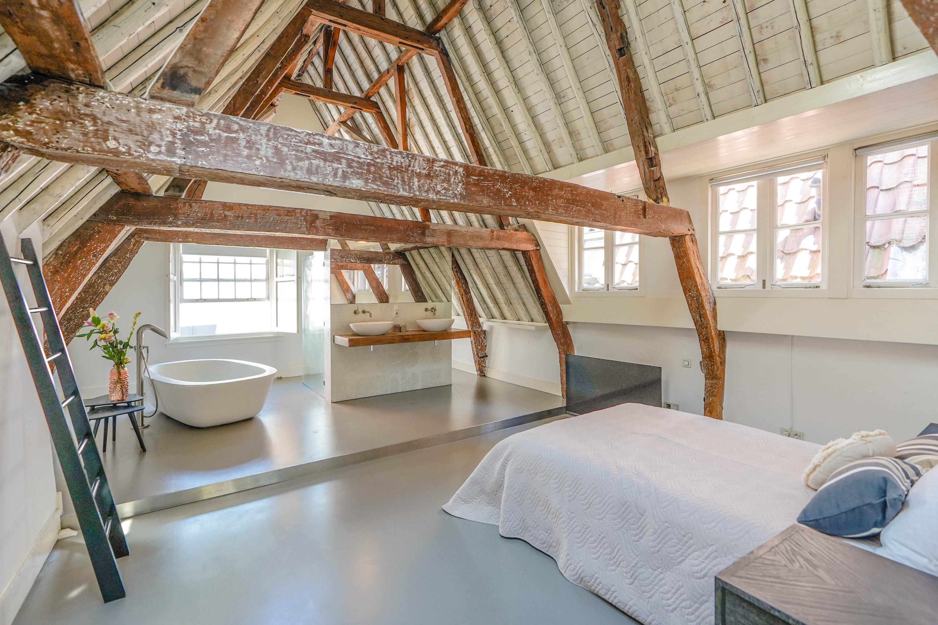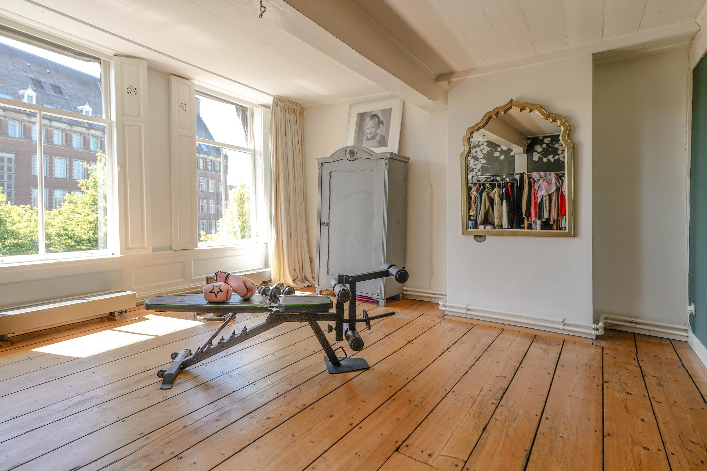 La primera planta acoge un salón de 70 m² con vistas al Rin y a la plaza Stadhuisplein, y una magnífica cocina-comedor de 50 m² con amplias encimeras y una mesa para doce personas, perfecta para reuniones y comodidad diaria. Los dormitorios se distribuyen en las plantas superiores, con siete habitaciones y tres baños; todos cuentan con grandes ventanales, armarios empotrados y espacio para ropa blanca, incluyendo una suite principal con baño privado bajo techos abuhardillados de gran presencia.