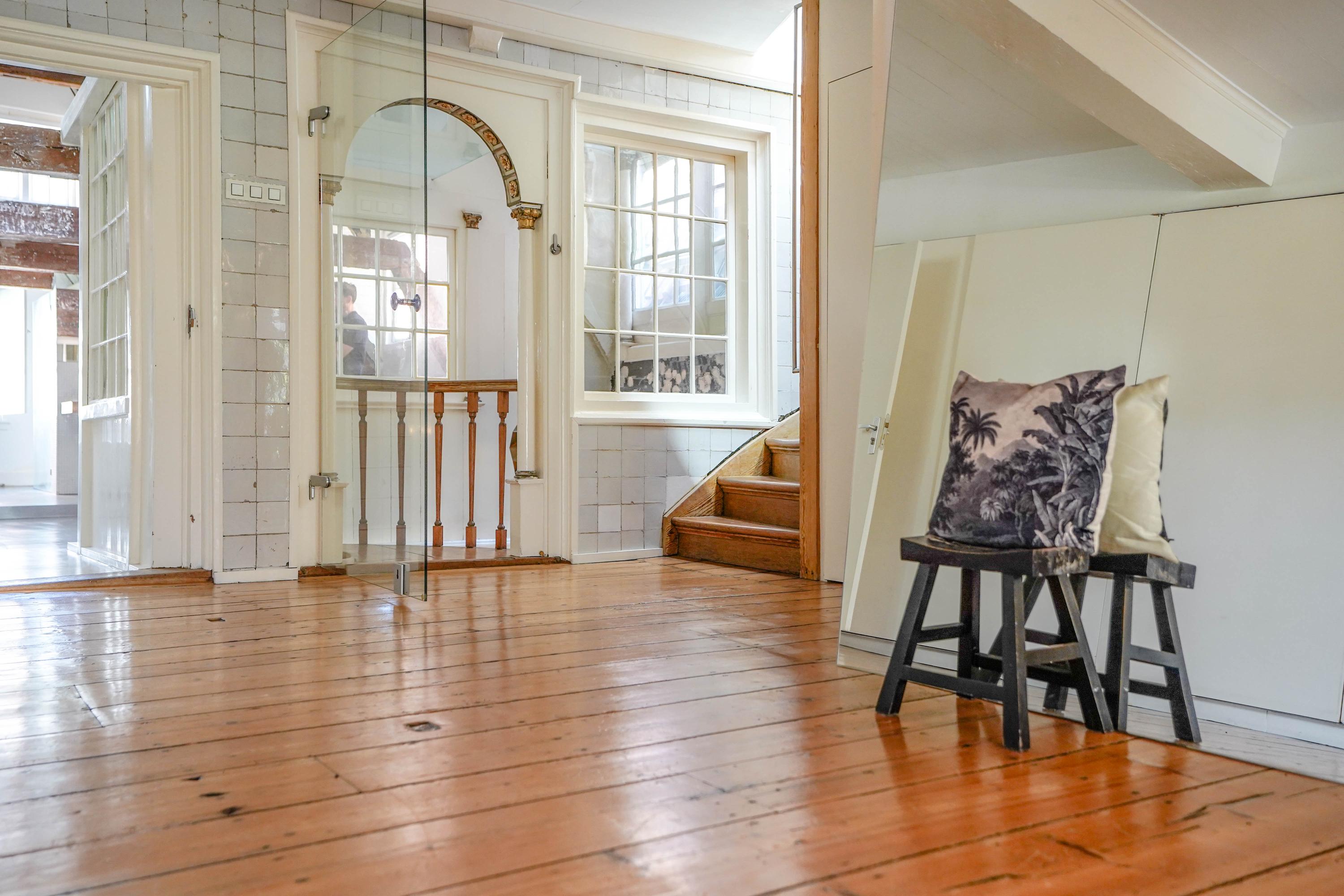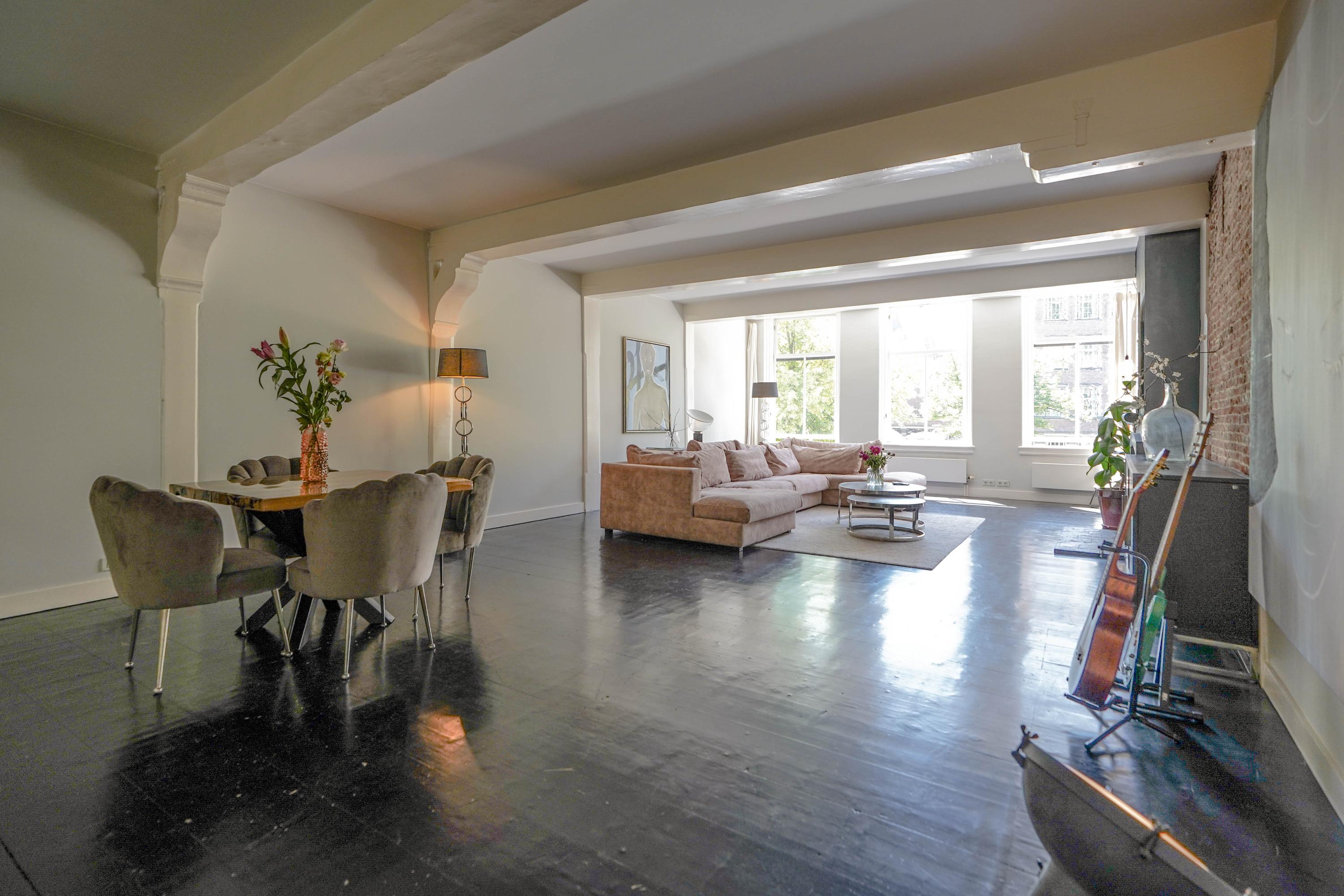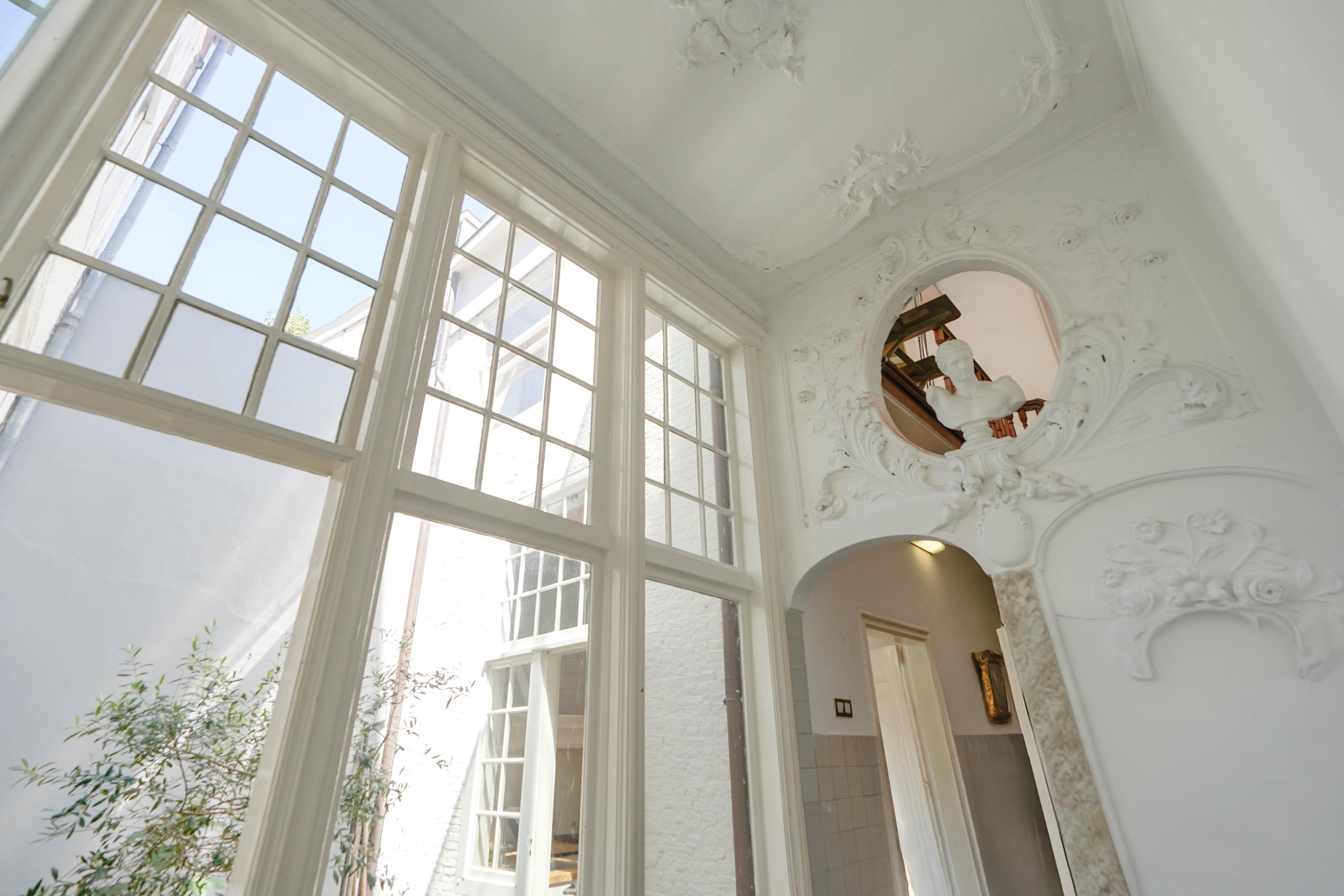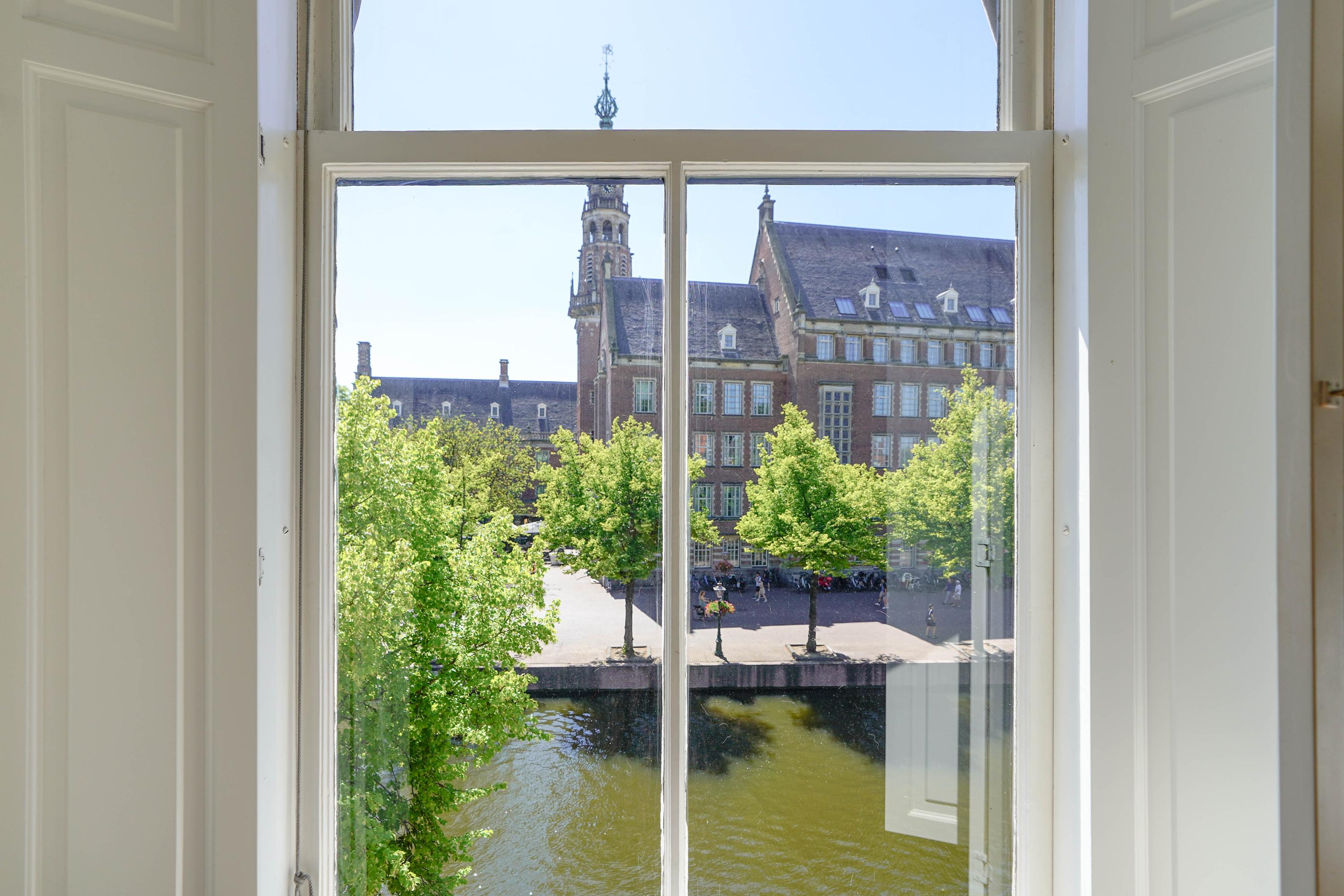 Esta casa histórica en Leiden ofrece una combinación excepcional de arquitectura del siglo XVII y confort contemporáneo, ubicada junto el agua del Rin al pie de la colina del castillo. Detrás de su discreta fachada, la propiedad revela 437 m² de superficie habitable repartidos entre la casa principal original y un edificio trasero restaurado. Amplias y altas estancias, algunas con una imponente cumbrera de ocho metros, se definen por vigas de roble expuestas, chimeneas de piedra natural y fastuosas molduras de estuco, reminiscencias de su próspero origen.