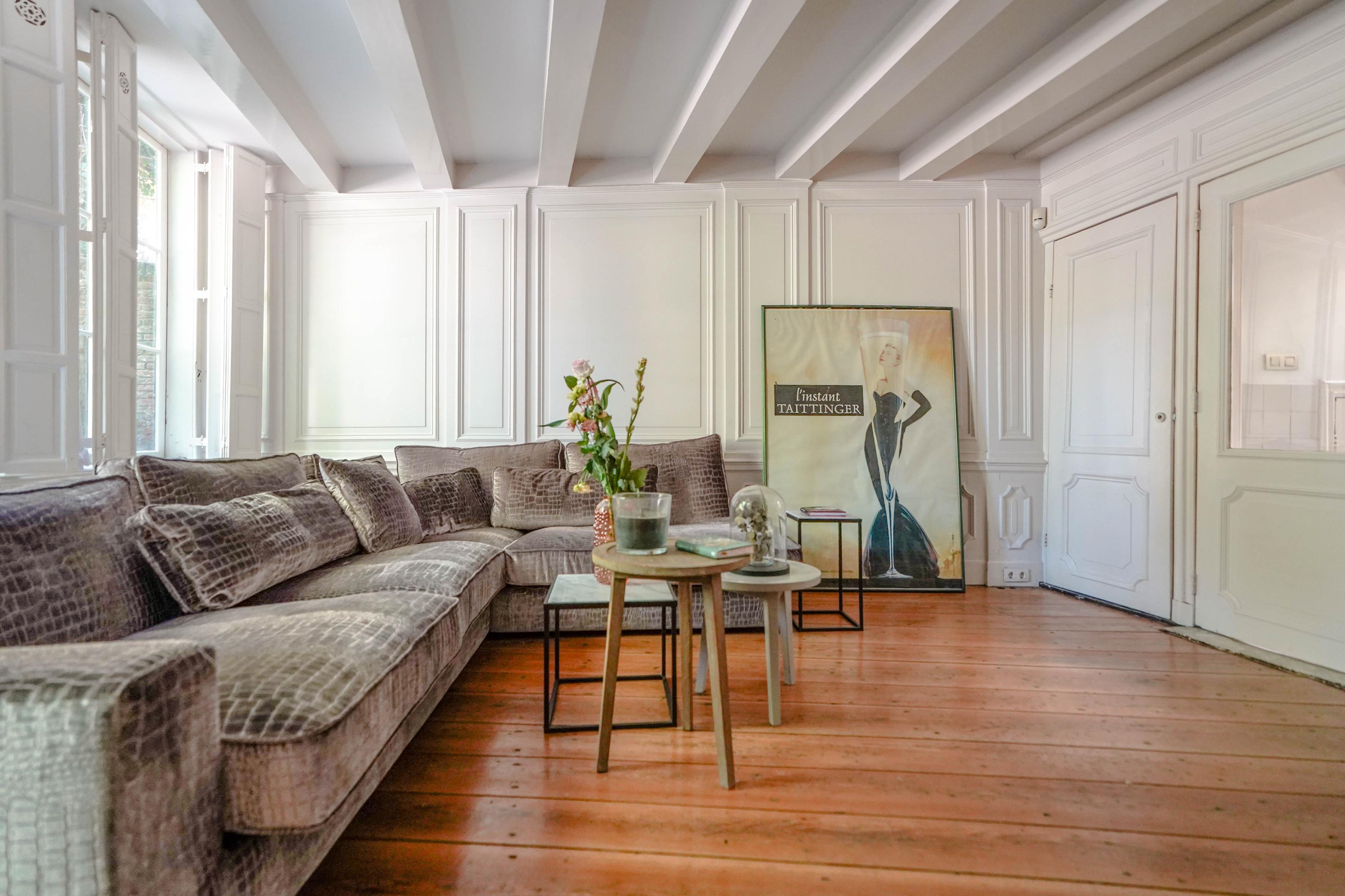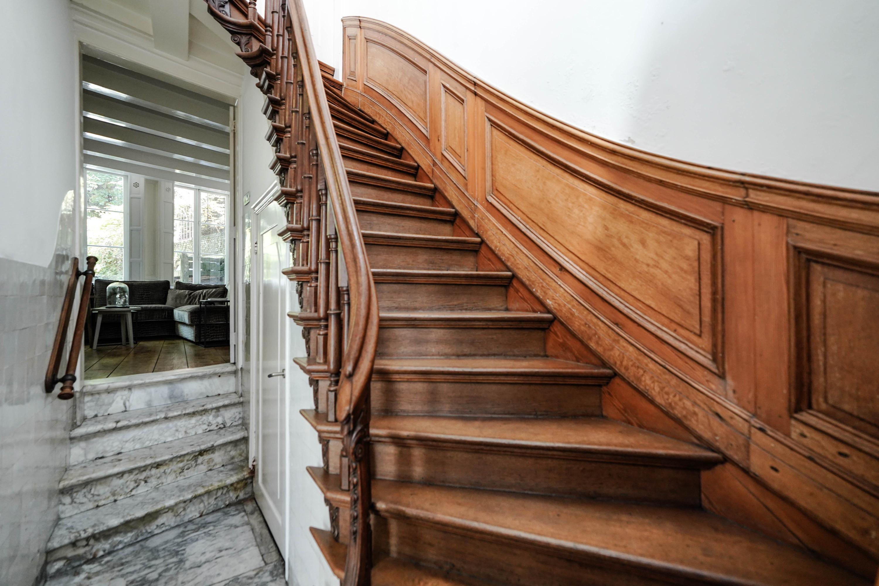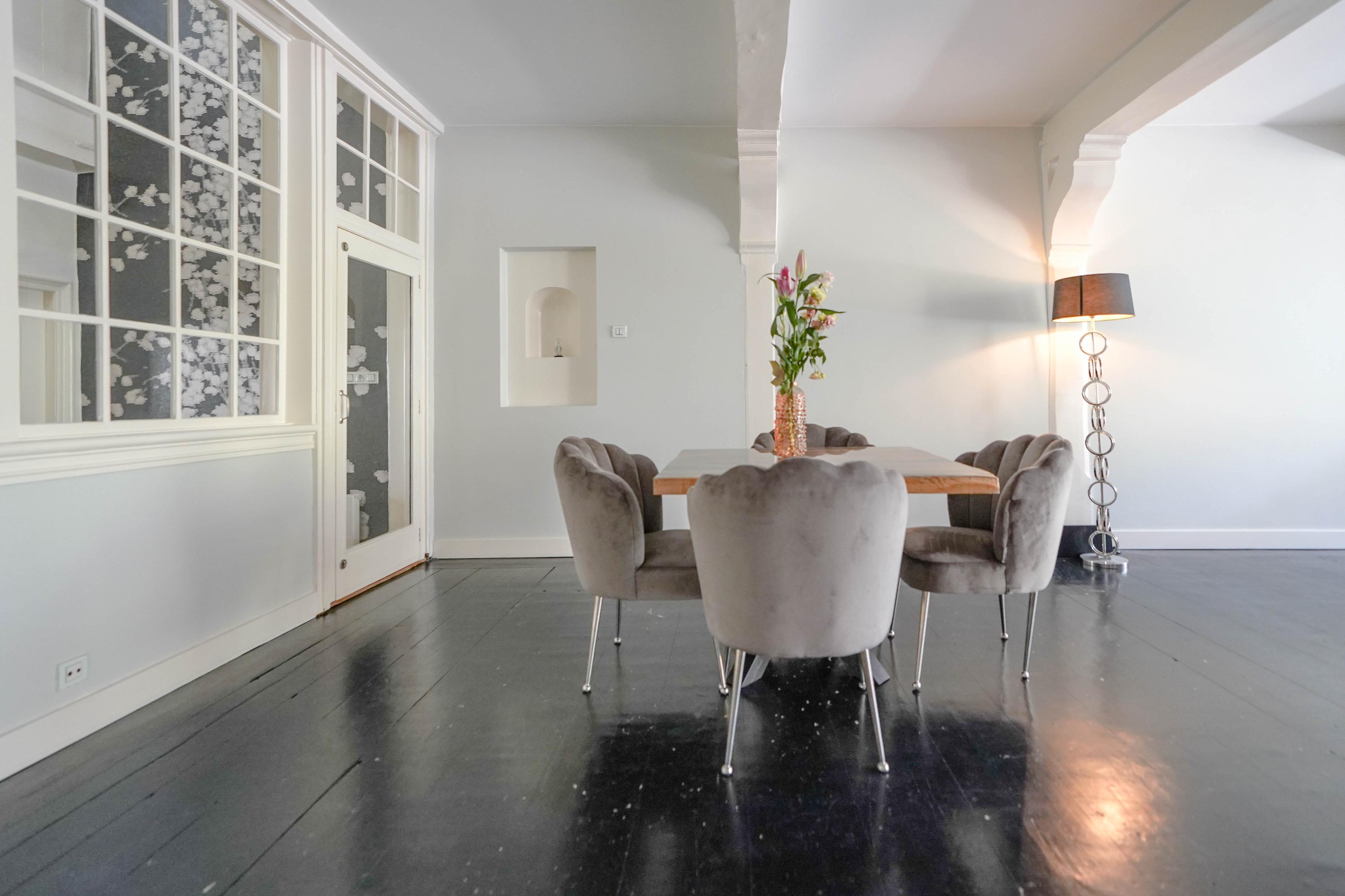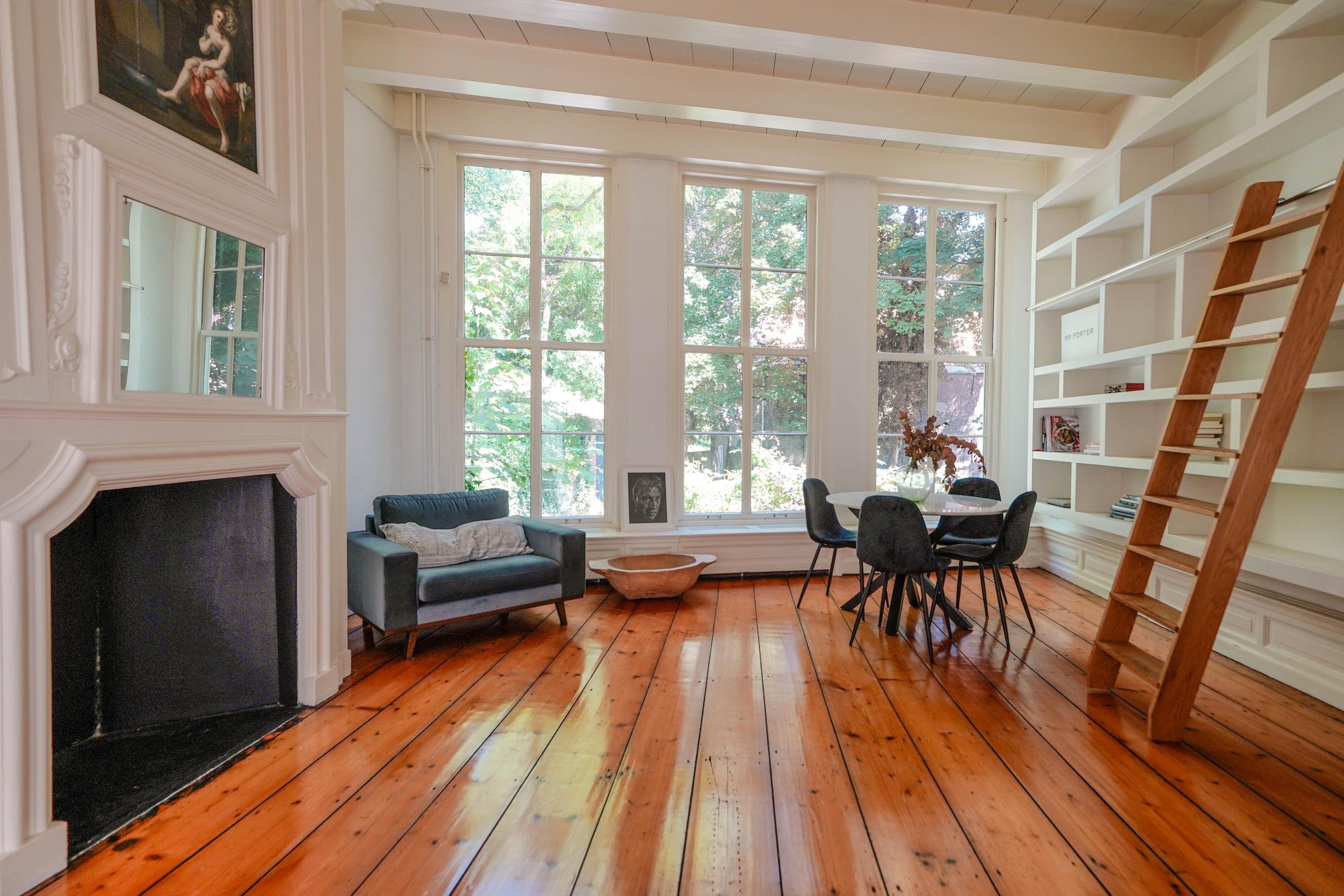 Esta casa histórica en Leiden ofrece una combinación excepcional de arquitectura del siglo XVII y confort contemporáneo, ubicada junto el agua del Rin al pie de la colina del castillo. Detrás de su discreta fachada, la propiedad revela 437 m² de superficie habitable repartidos entre la casa principal original y un edificio trasero restaurado. Amplias y altas estancias, algunas con una imponente cumbrera de ocho metros, se definen por vigas de roble expuestas, chimeneas de piedra natural y fastuosas molduras de estuco, reminiscencias de su próspero origen.