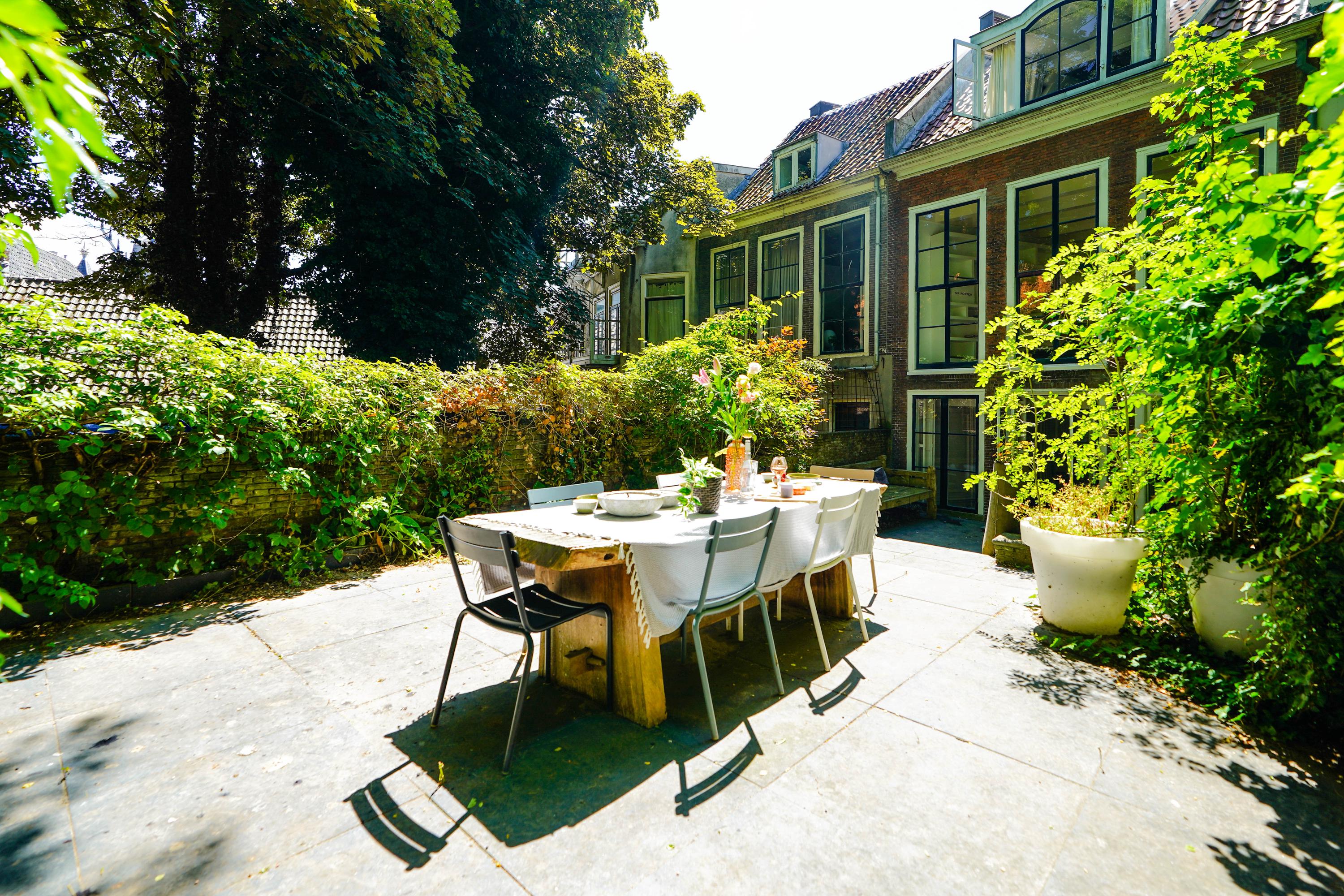 La casa trasera conecta de forma fluida con el jardín, un auténtico oasis en el núcleo medieval protegido de Leiden. Concebido tanto para el retiro como para la convivencia, dispone de una sala-jardín en planta baja con cocina adicional, un segundo salón de gran altura con vistas al castillo y una casa de invitados independiente. Elementos como la ventilación mecánica, el conducto de humos, el aislamiento del tejado, calefacción por suelo radiante parcial y conectividad de fibra óptica ofrecen máximo confort, mientras que su designación como monumento nacional y la inclusión en un entorno urbano protegido refuerzan su valor histórico.