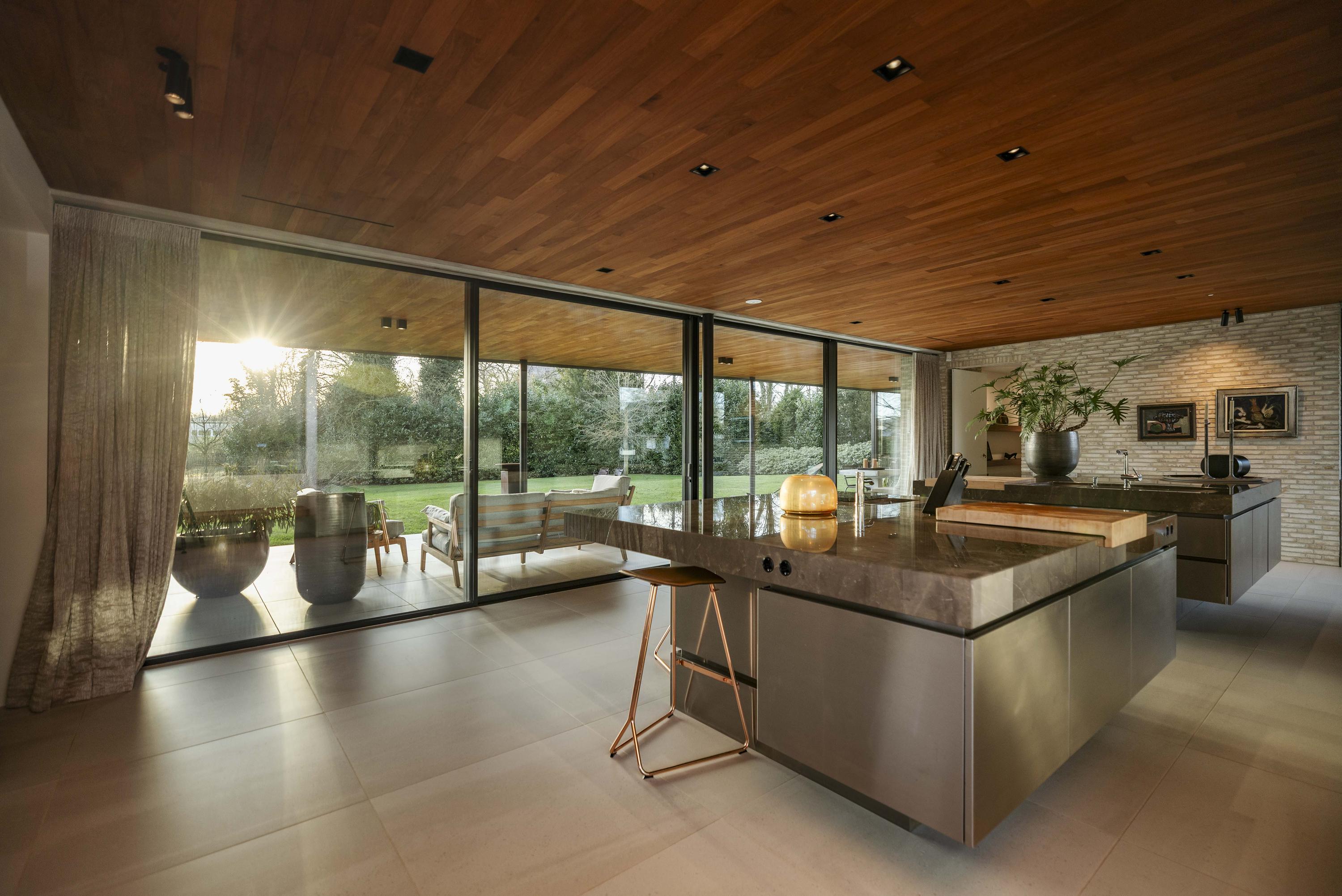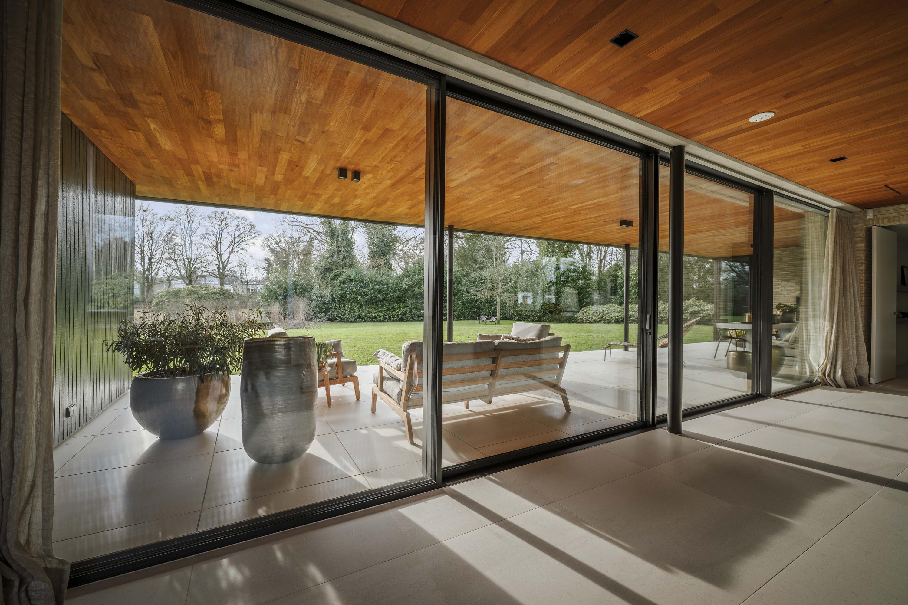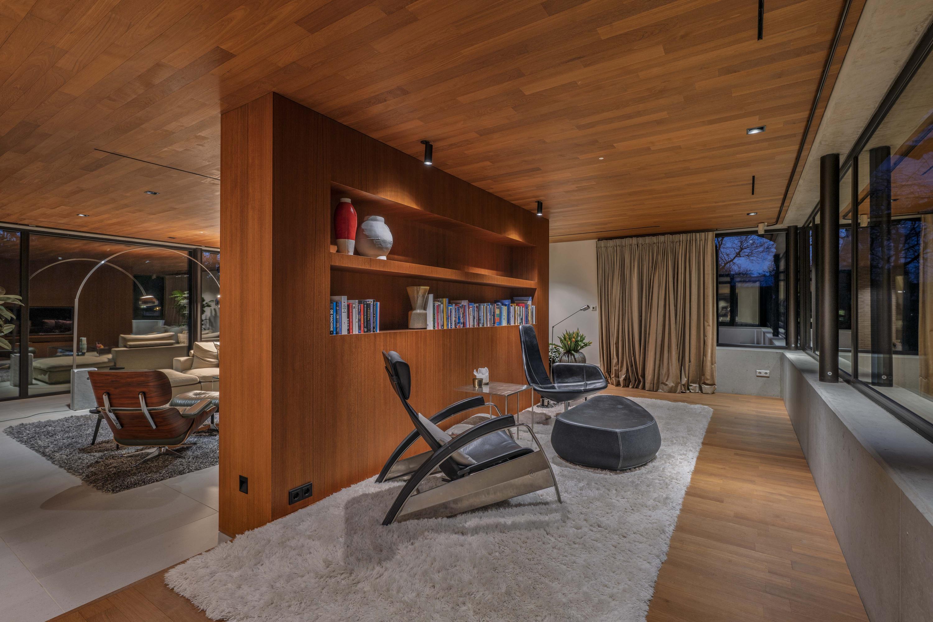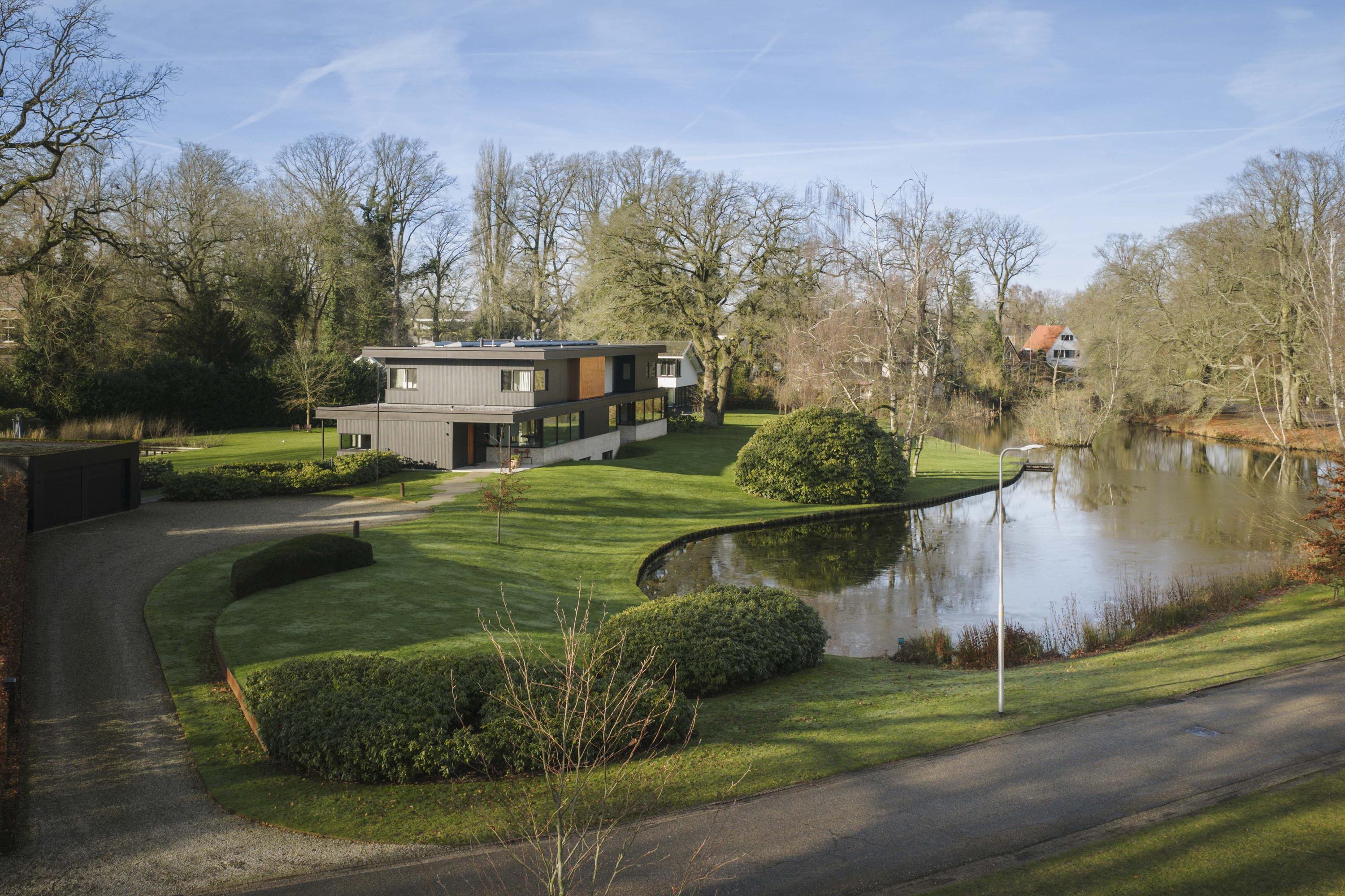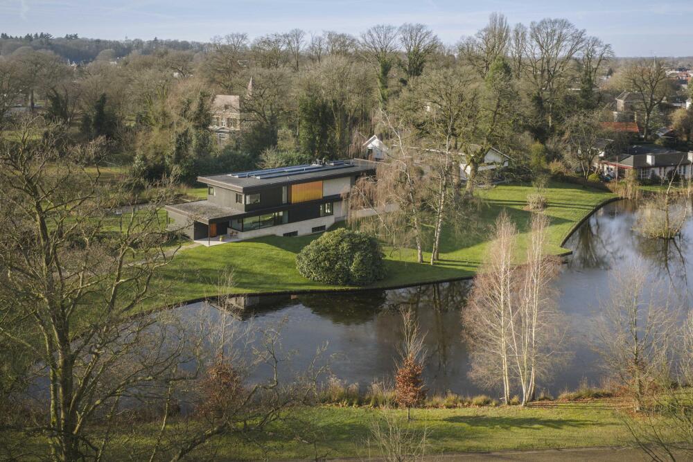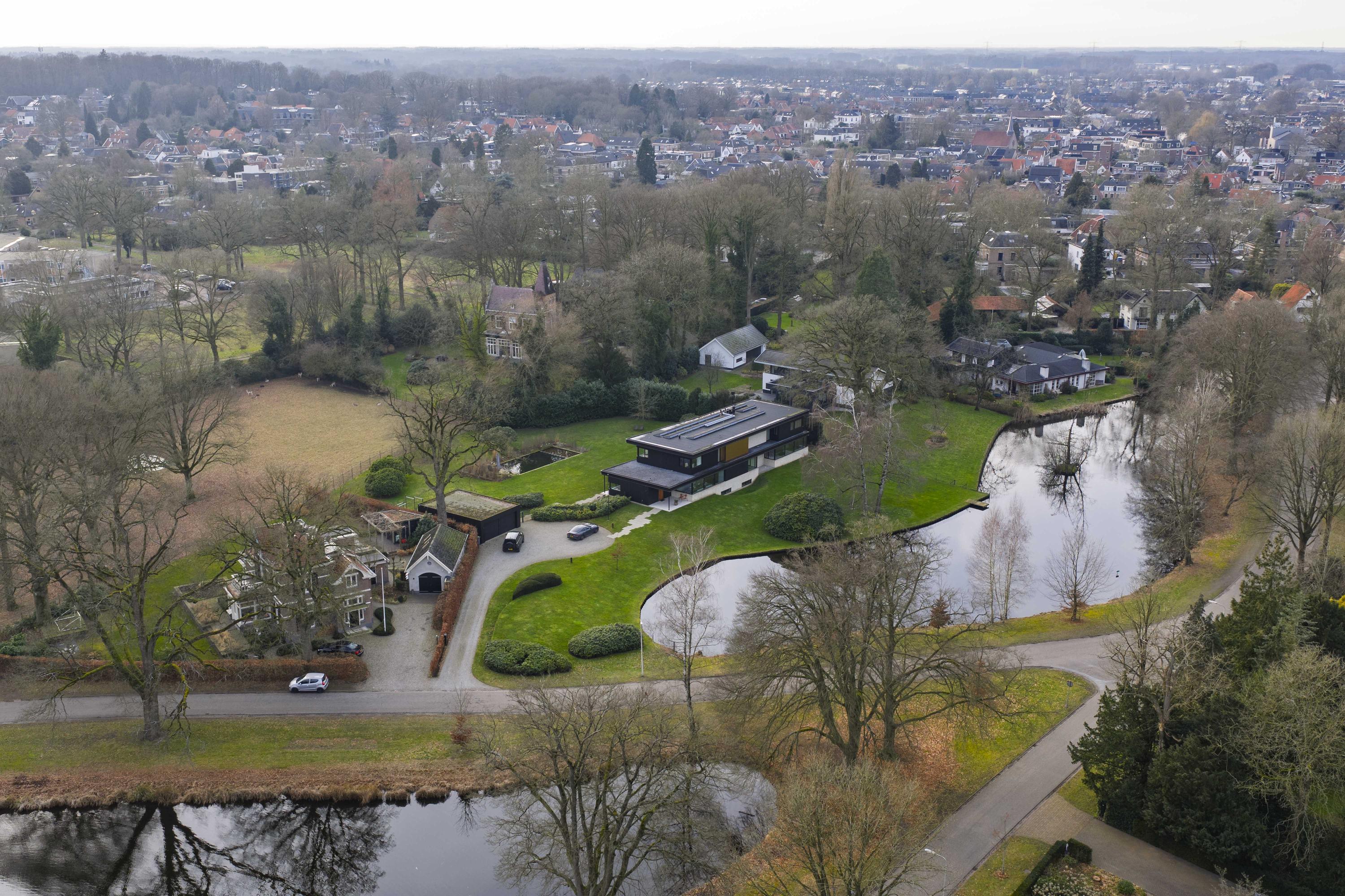 Villa en venta en Lochem Berkeloord, situada en una parcela ajardinada de 6.635 m², que ofrece un equilibrio poco frecuente entre diseño contemporáneo y la serenidad de un parque. Construida en 2019 según la visión del arquitecto Bart Vos, esta residencia familiar combina transparencia y seguridad, con vistas a los estanques de Berkeloord en la parte delantera y al parque de ciervos de Lochem en la trasera. Con una superficie de 500 m² distribuidos en tres plantas, la vivienda se articula en torno a una cocina luminosa de 88 m², conectada de forma fluida con una terraza cubierta equipada con chimenea exterior Metalfire. Suelos de Mosa en tono travertino y techos de teca aceitada aportan una calidez sutil y tangible, mientras los ventanales de suelo a techo mantienen un diálogo permanente con los jardines y la luz natural.