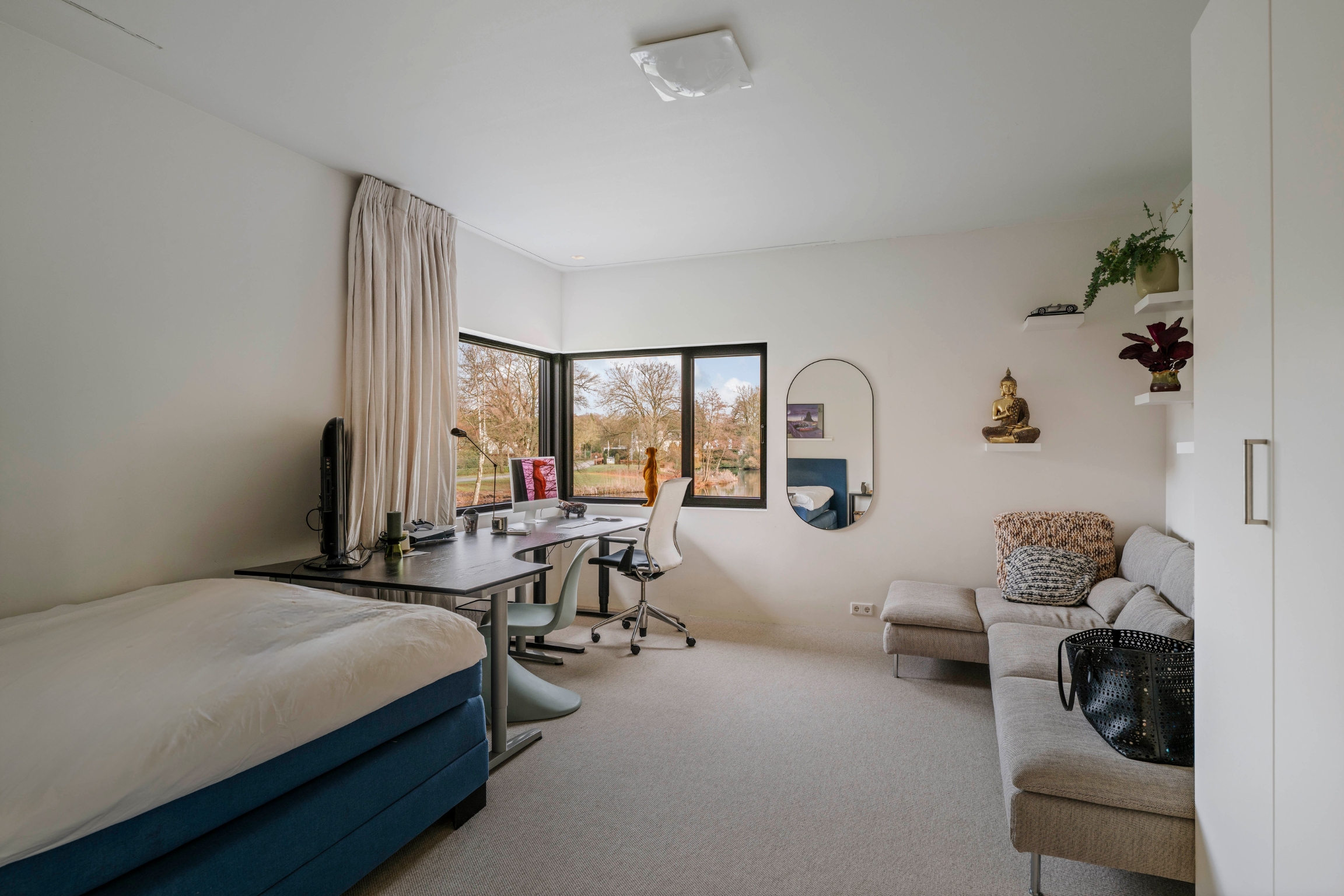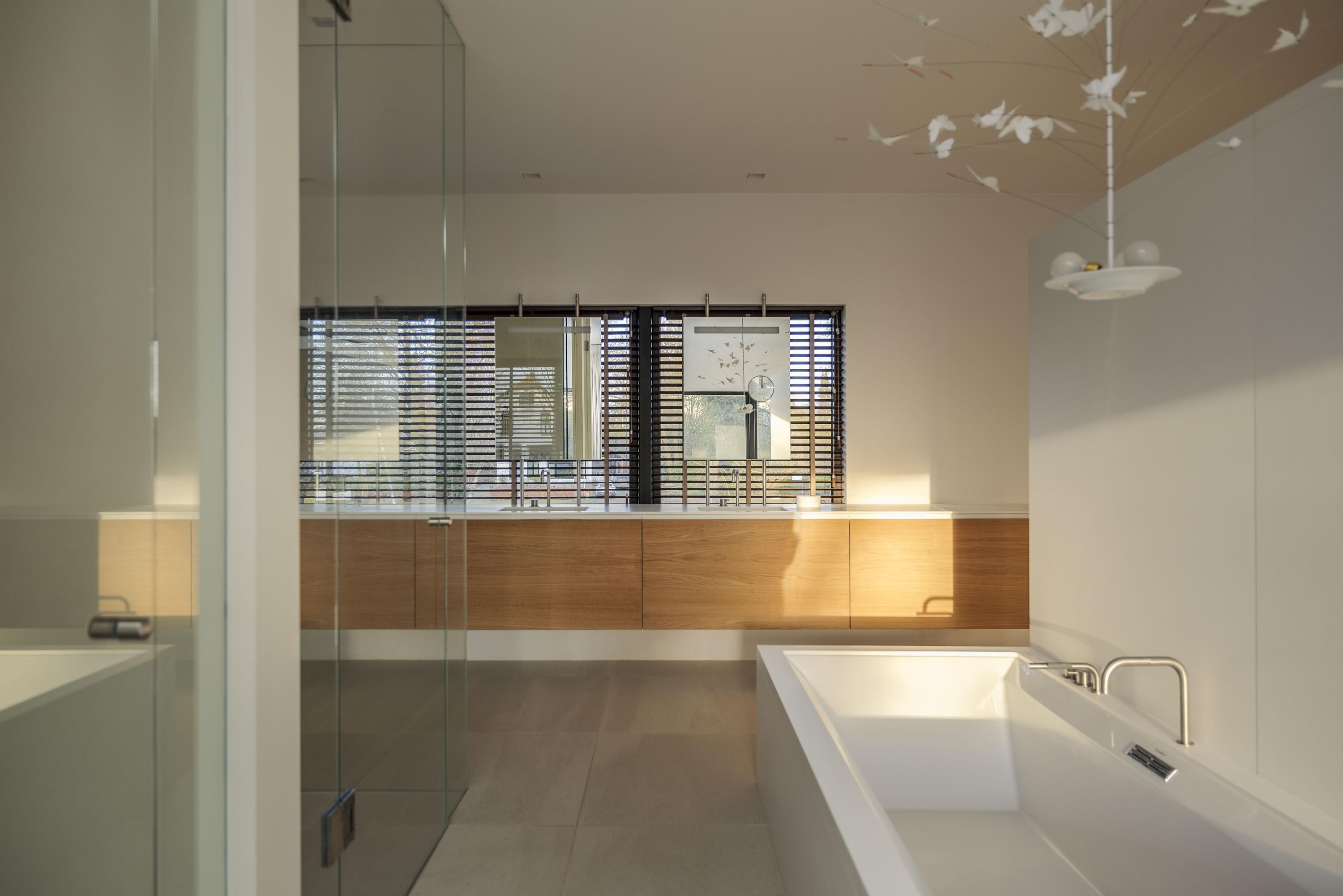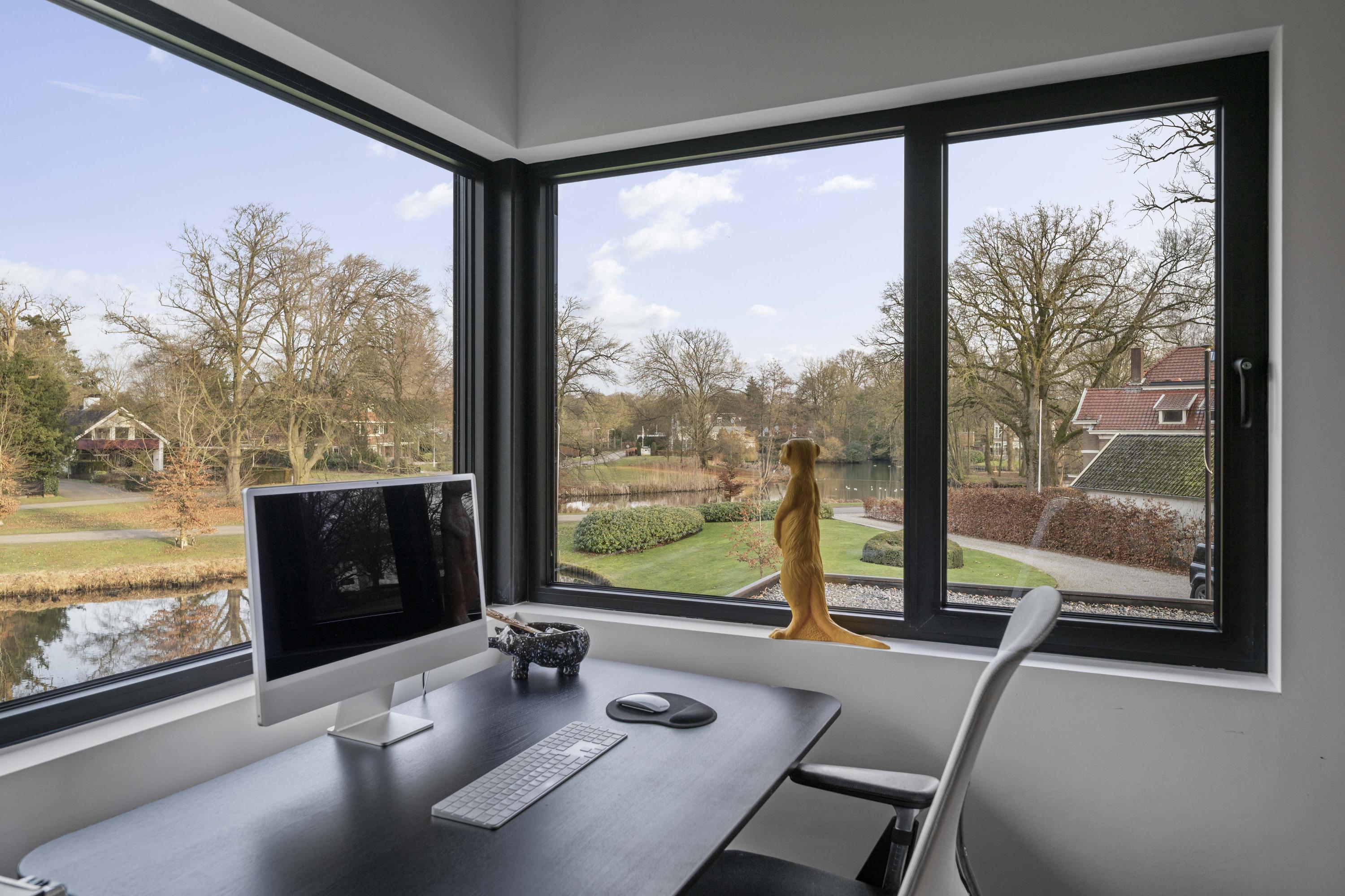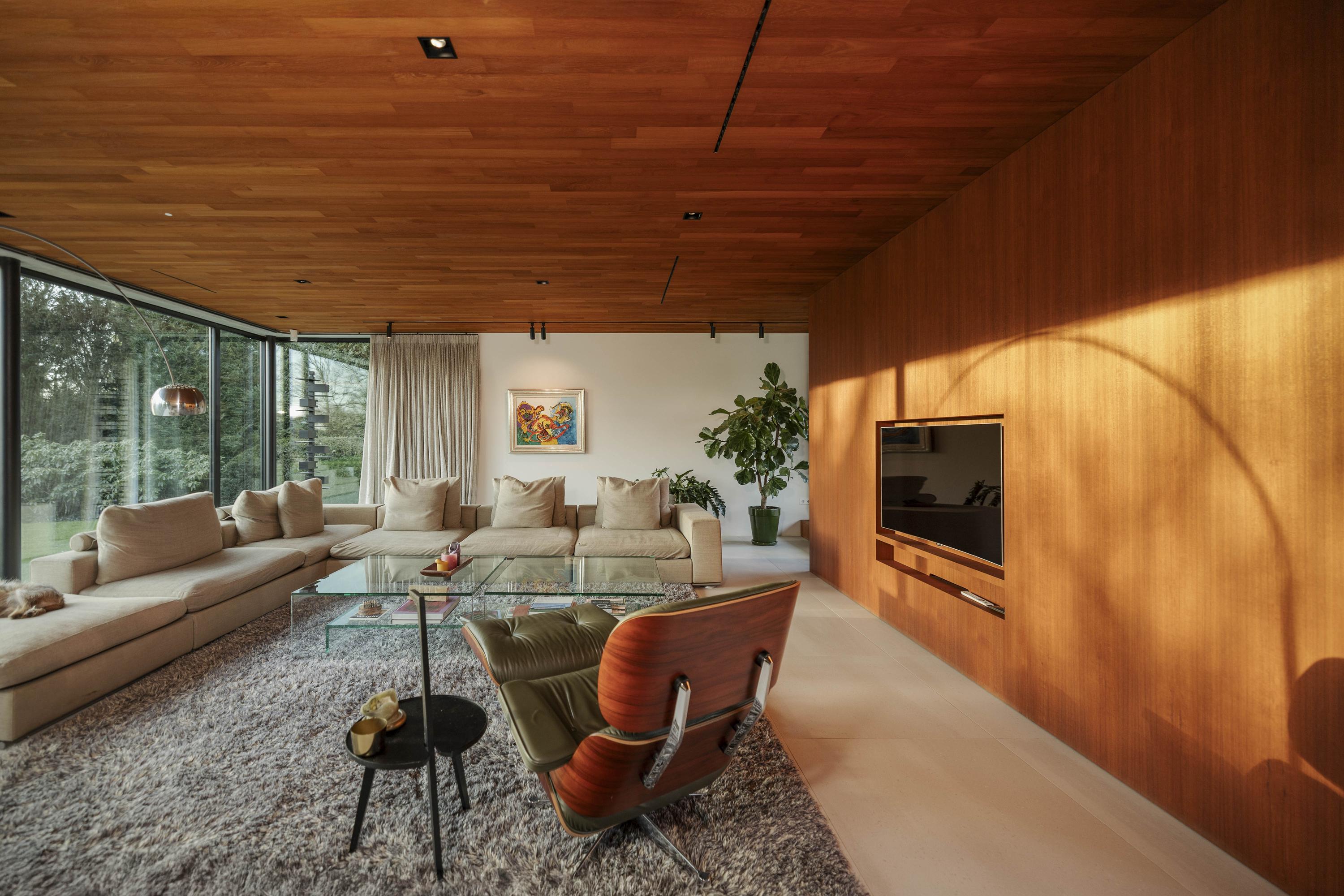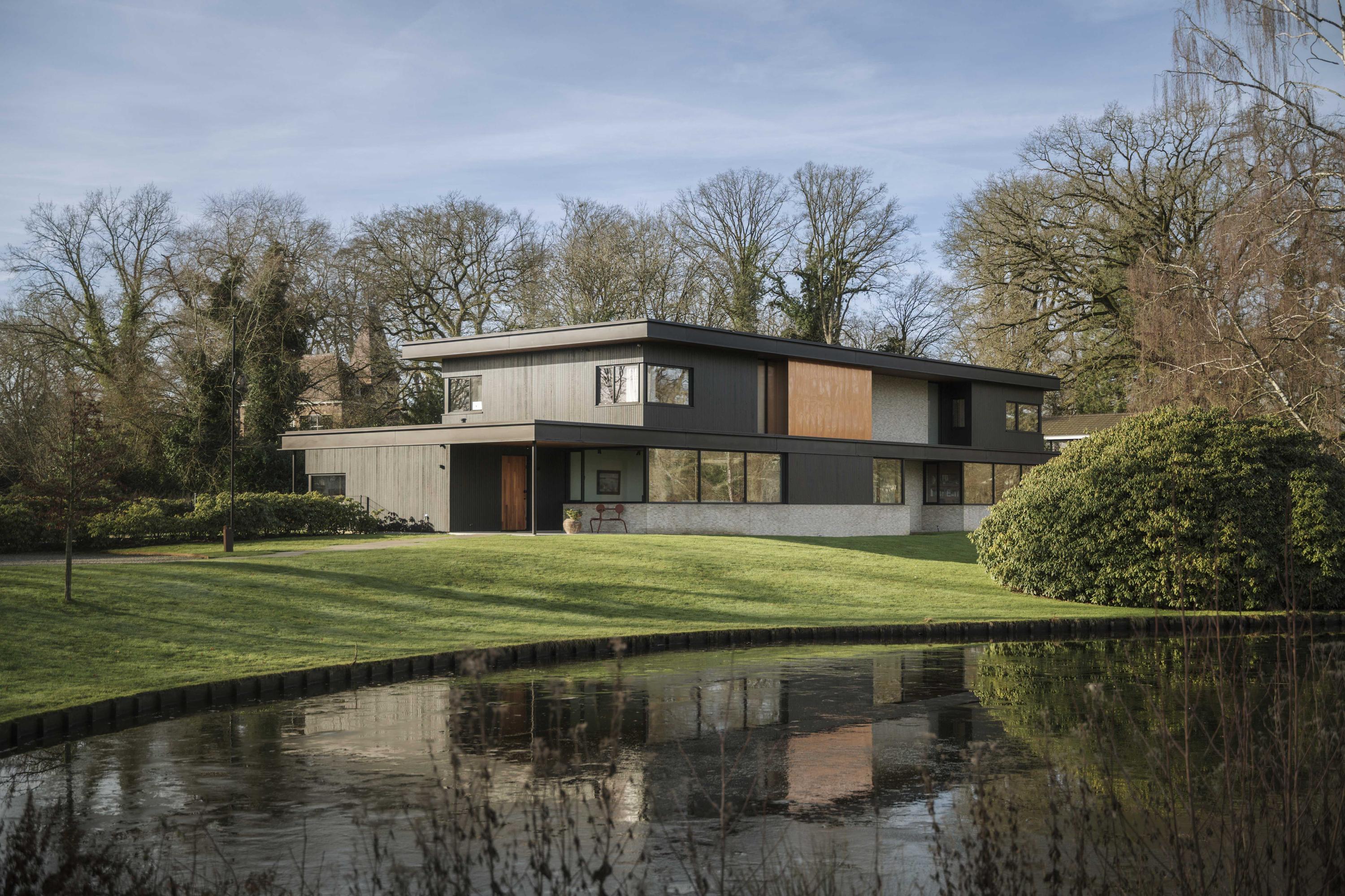 Villa en venta en Lochem Berkeloord, situada en una parcela ajardinada de 6.635 m², que ofrece un equilibrio poco frecuente entre diseño contemporáneo y la serenidad de un parque. Construida en 2019 según la visión del arquitecto Bart Vos, esta residencia familiar combina transparencia y seguridad, con vistas a los estanques de Berkeloord en la parte delantera y al parque de ciervos de Lochem en la trasera. Con una superficie de 500 m² distribuidos en tres plantas, la vivienda se articula en torno a una cocina luminosa de 88 m², conectada de forma fluida con una terraza cubierta equipada con chimenea exterior Metalfire. Suelos de Mosa en tono travertino y techos de teca aceitada aportan una calidez sutil y tangible, mientras los ventanales de suelo a techo mantienen un diálogo permanente con los jardines y la luz natural.