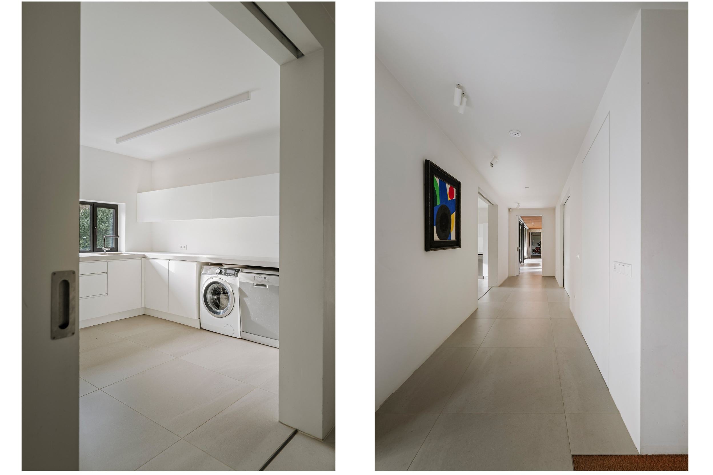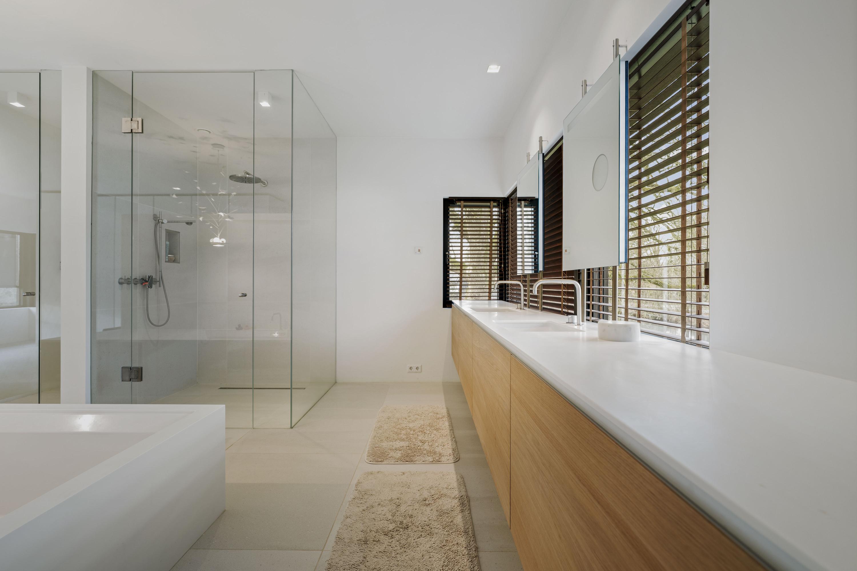 El salón principal, de 74 m², dispone de dos áreas de estar definidas, mobiliario a medida y vistas panorámicas. En la planta superior, cuatro dormitorios amplios y dos baños se complementan con una suite principal que incluye ventanas a dos orientaciones y un baño de gran elegancia. El sótano amplía la zona habitable e incorpora estudio o gimnasio, dormitorio de invitados con baño en suite y robustos acabados en hormigón con luz natural. El confort se garantiza en toda la vivienda gracias a la calefacción por suelo radiante, una bomba de calor geotérmica y 30 paneles solares, alcanzando la clase energética A++.