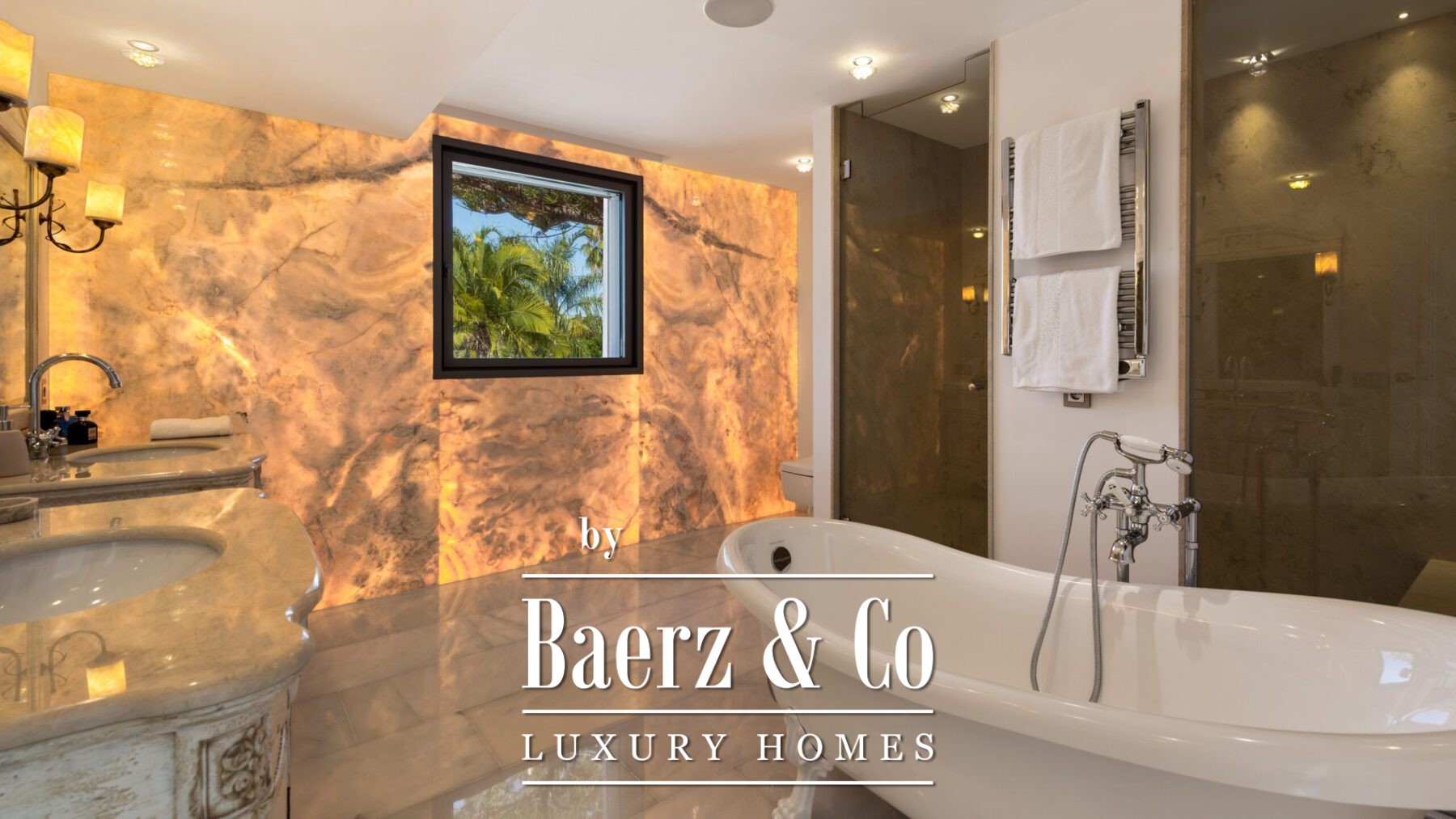 Las comodidades incluyen aire acondicionado por zonas, calefacción por suelo radiante para confort preciso, un sistema domótico completo, sala de cine, cocina exterior, barbacoa, garaje y seguridad las 24 horas. Con vistas al golf y a la montaña, esta villa de lujo en Marbella es a la vez un refugio privado y puerta de acceso a los mejores campos de golf, playas y servicios de la zona.