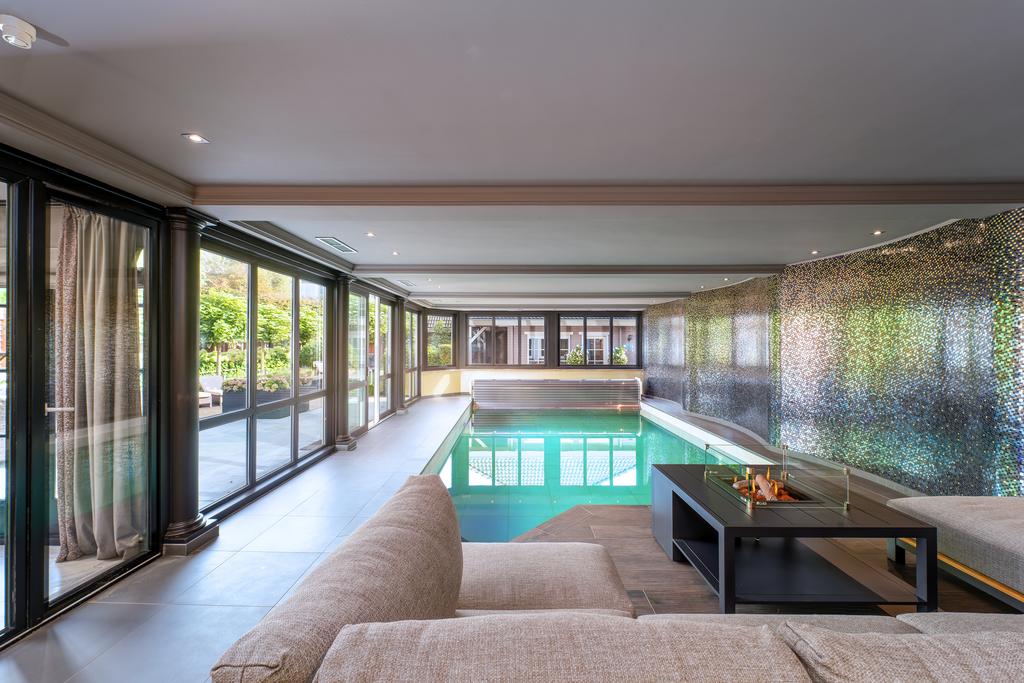 Al ingresar, los suelos de parquet en espiga y el mármol italiano crean una atmósfera de elegancia sosegada. Espacios habitables amplios fluyen de forma natural desde el gran vestíbulo de entrada hasta la cocina estilo campiña, equipada con electrodomésticos de alta gama y acceso directo a terrazas exteriores seleccionadas. La piscina interior acristalada, renovada en 2022, se conecta con el jardín y la zona de bienestar, invitando a la relajación y privacidad todo el año.