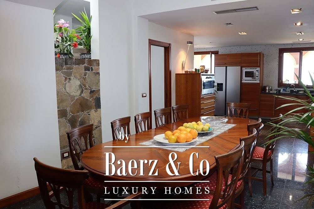 La planta baja gira en torno a un amplio salón, donde una cocina profesional abierta se integra perfectamente con el comedor. Anexa a esta zona se encuentra un jardín de invierno con una segunda cocina y barbacoa, cerrado pero abierto a espectaculares vistas al mar. Entre sus características prácticas destaca un gran garaje con capacidad para varios coches, ducha independiente para la piscina y lavandería. La planta baja conecta directamente con un pórtico que conduce a las terrazas y a una piscina infinita climatizada que se funde con el horizonte.