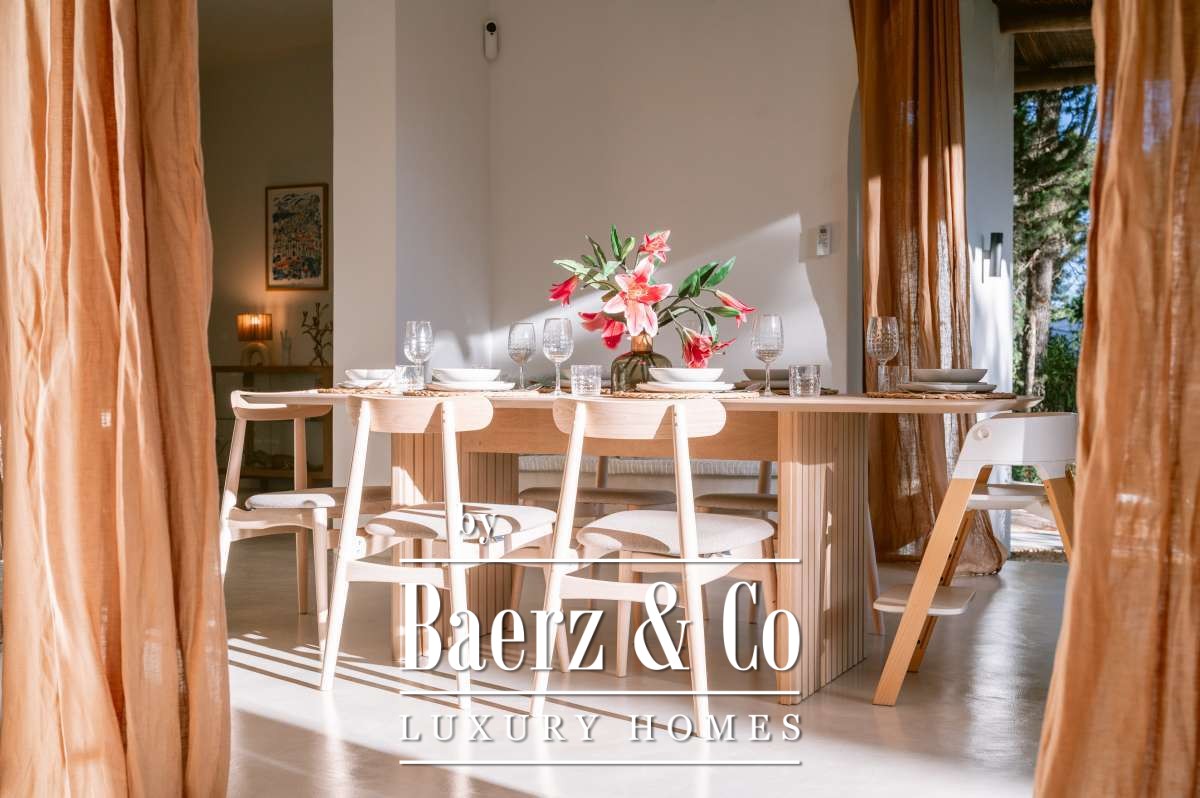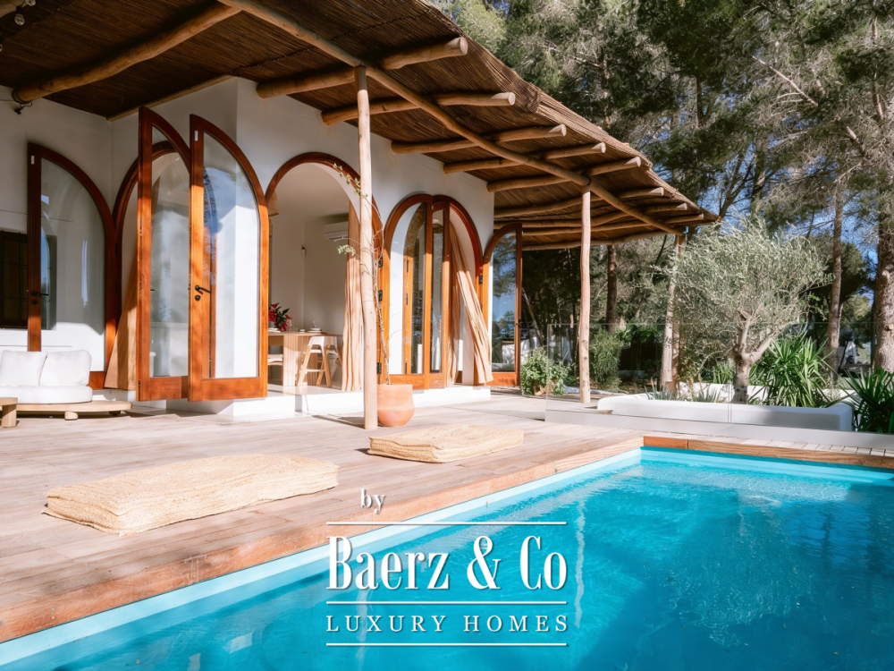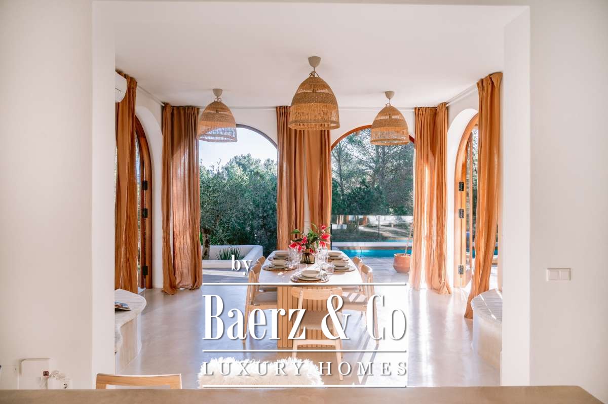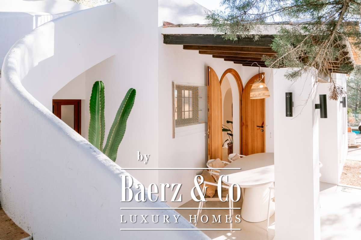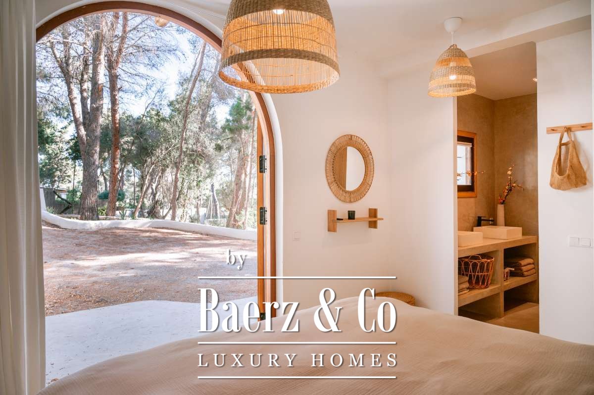 Villa San Agustín España conjuga privacidad con una vida exterior sin esfuerzo en un entorno boscoso y sereno. Esta villa completamente renovada, con 175 m² construidos sobre una parcela privada de 1.783 m², encarna el espíritu perdurable de Ibiza, manteniéndose a su vez cerca de restaurantes locales y de algunas de las playas más prestigiosas de la costa oeste. Su ubicación equilibra aislamiento y centralidad, rodeada por la belleza verde de San Agustín.