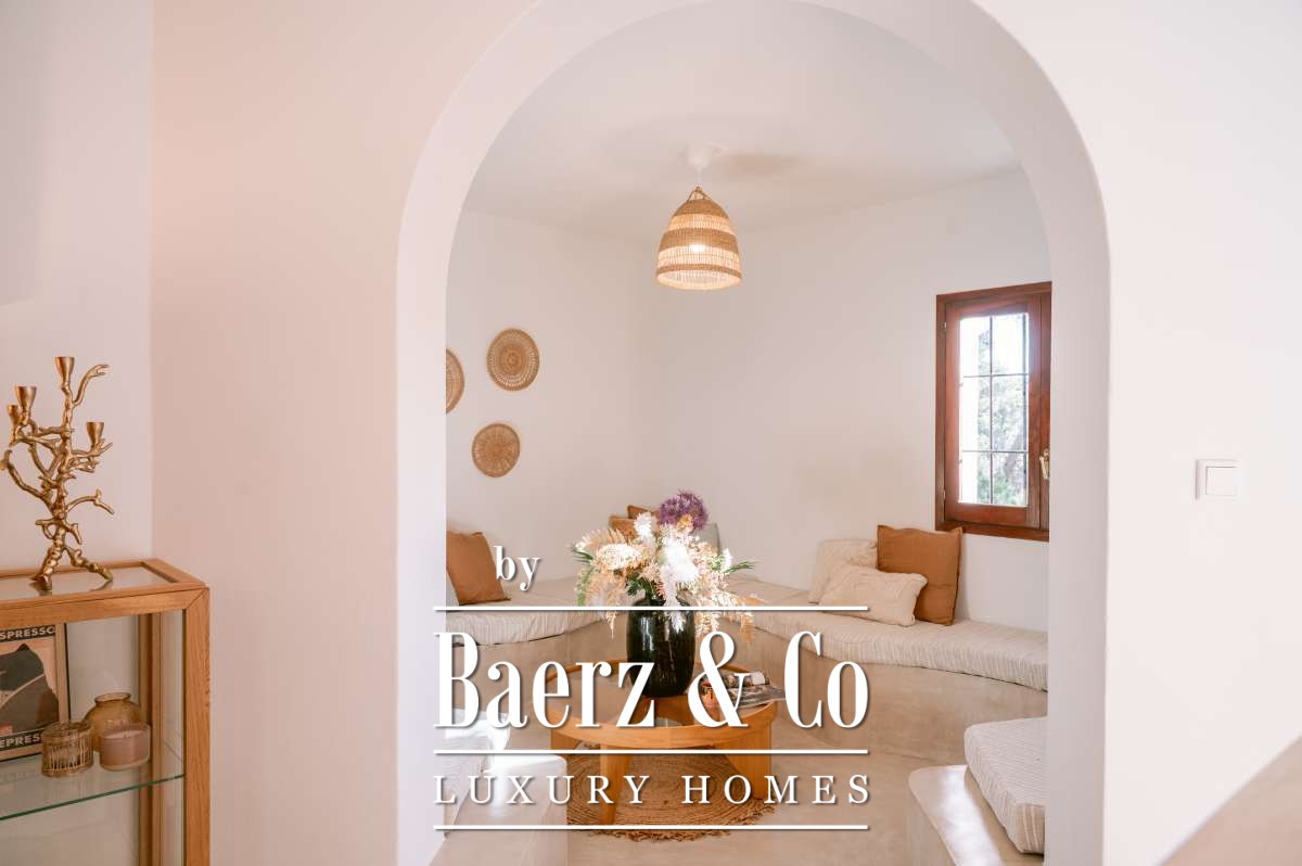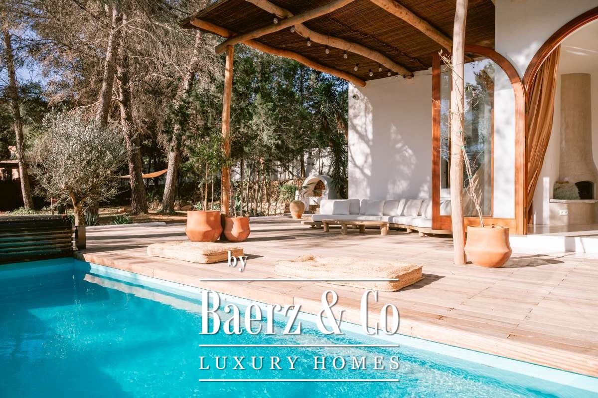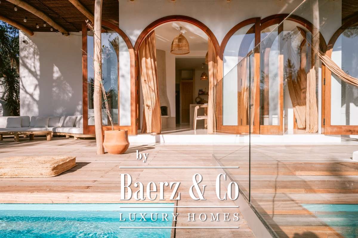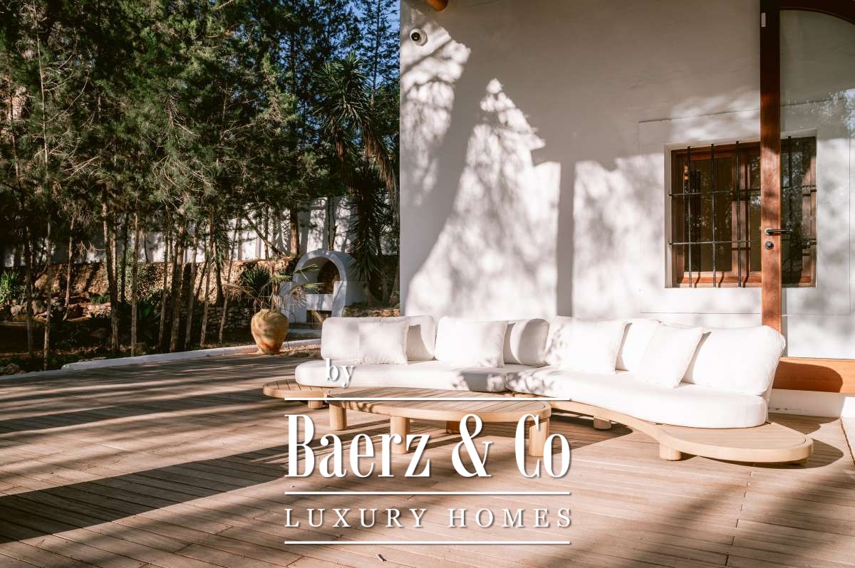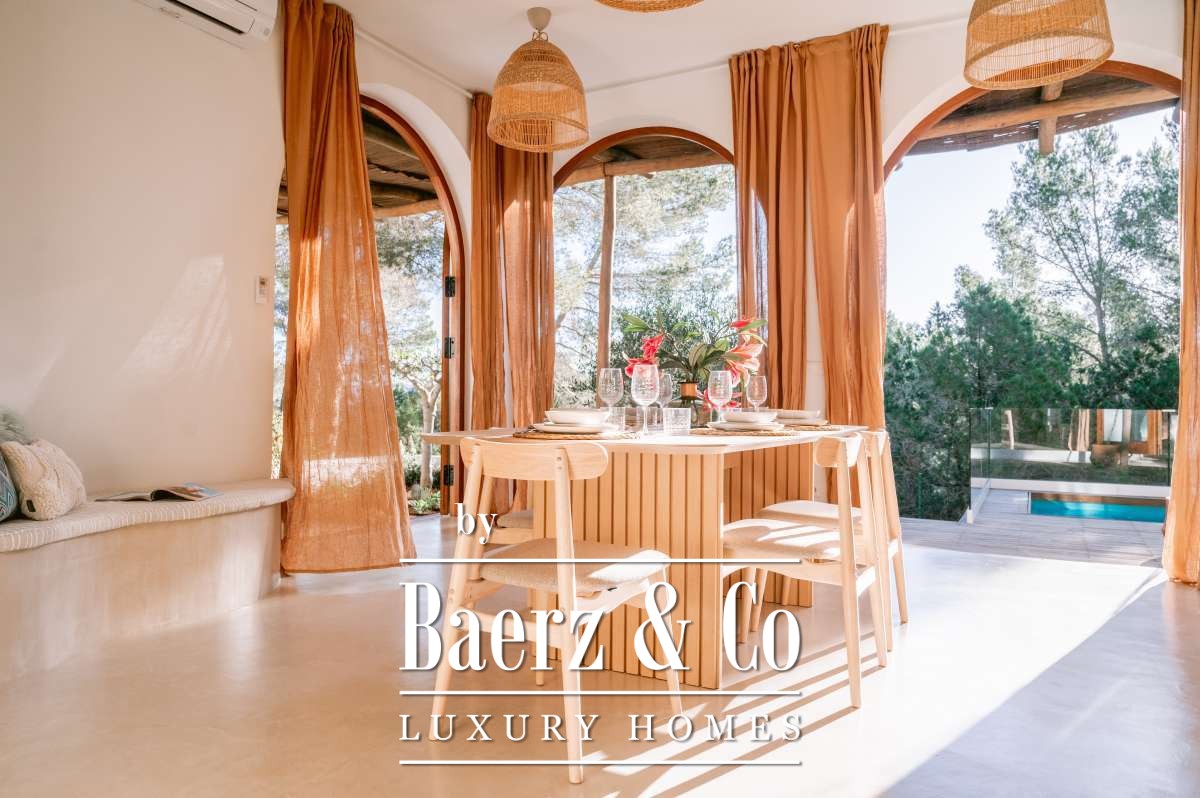 Villa San Agustín España conjuga privacidad con una vida exterior sin esfuerzo en un entorno boscoso y sereno. Esta villa completamente renovada, con 175 m² construidos sobre una parcela privada de 1.783 m², encarna el espíritu perdurable de Ibiza, manteniéndose a su vez cerca de restaurantes locales y de algunas de las playas más prestigiosas de la costa oeste. Su ubicación equilibra aislamiento y centralidad, rodeada por la belleza verde de San Agustín.
