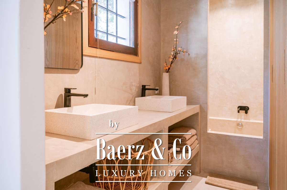 En su interior, cuatro dormitorios y dos baños se complementan con una atmósfera refinada y relajante. La luz natural inunda los espacios a través de amplios ventanales, resaltando una distribución orientada tanto al confort como al entorno paisajístico. Los acabados contemporáneos y los sutiles detalles de diseño reflejan la serenidad madura del enclave, mientras que un interior amueblado y listo para habitar recibe al instante. Comodidades adicionales como el sótano y la terraza en la azotea aportan dimensión y nuevas perspectivas.