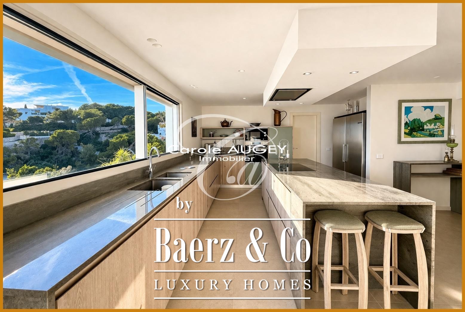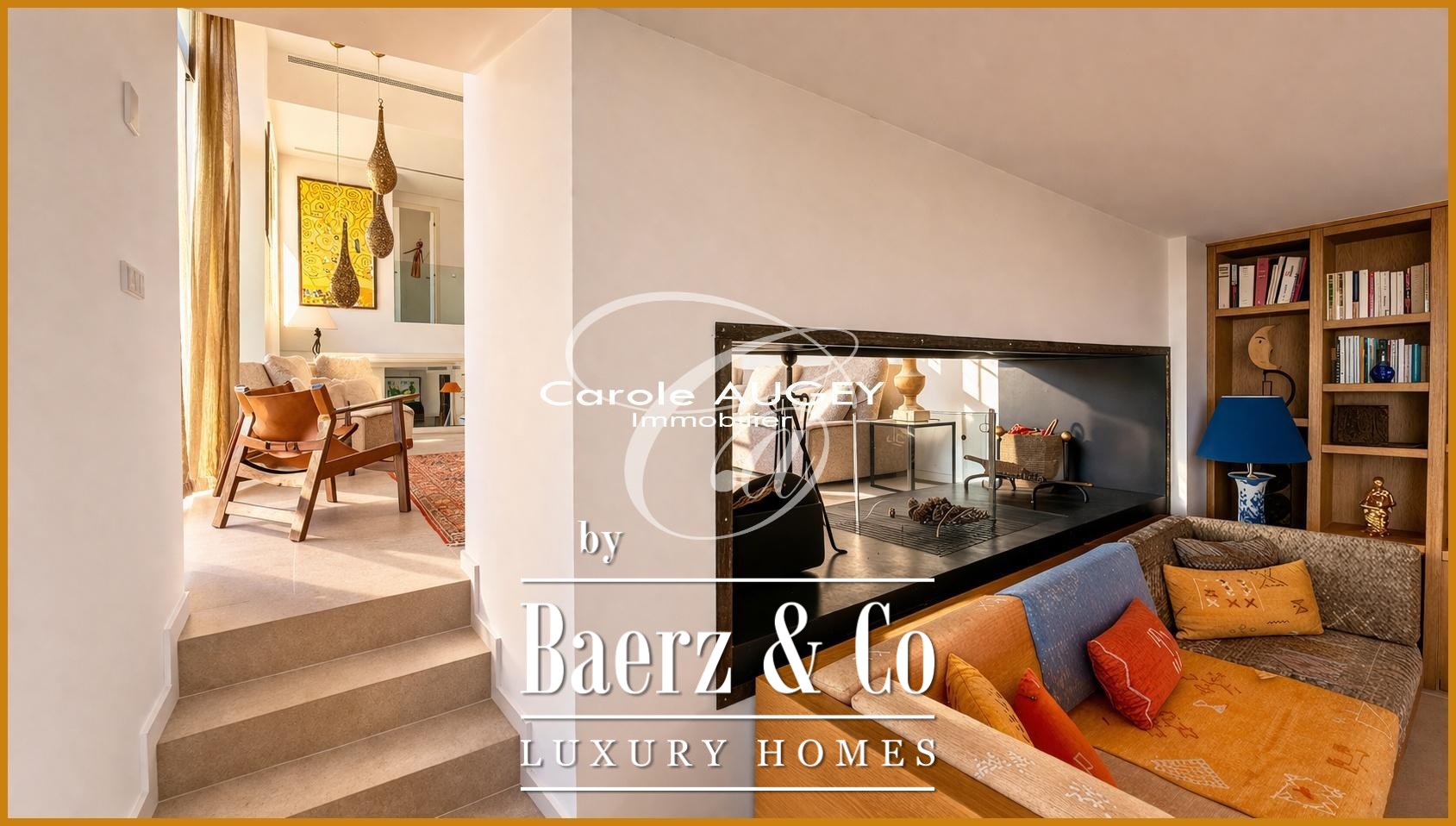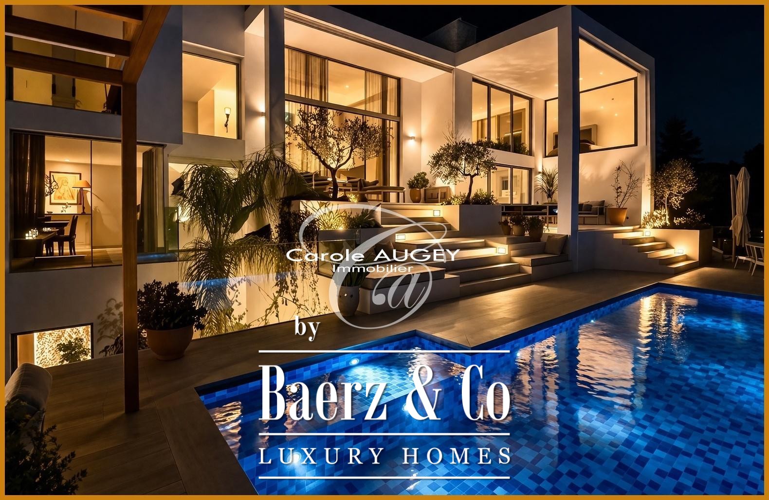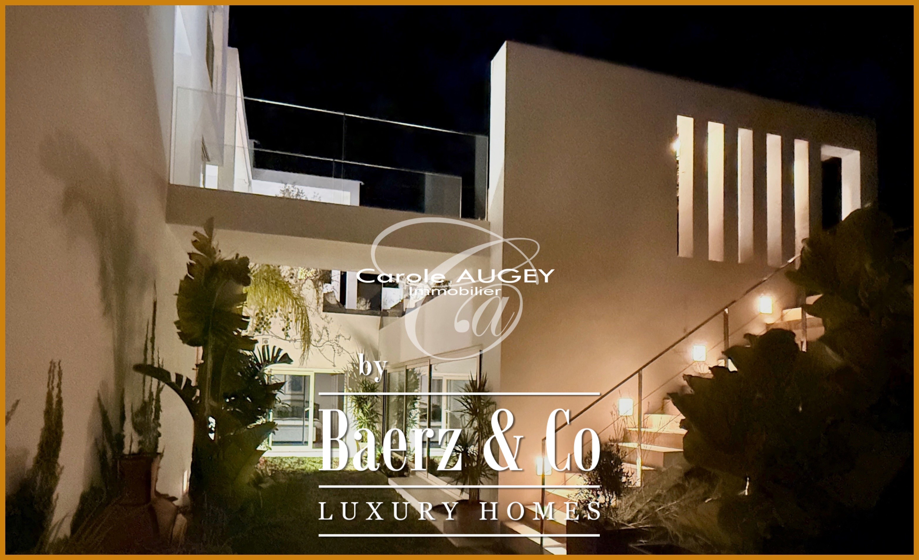 Totalmente reconstruida y finalizada en 2023, la villa exhibe un diseño contemporáneo refinado en sus 345 m² habitables, con un total construido superior a 400 m² en una parcela de 1.398 m². Cinco suites, incluido un estudio con acceso independiente, garantizan privacidad y fluidez en la circulación. Ventanales de suelo a techo, amplias terrazas y una impactante chimenea XXL de doble cara definen el salón principal, mientras la cocina completamente equipada se integra a la perfección con las áreas exteriores.