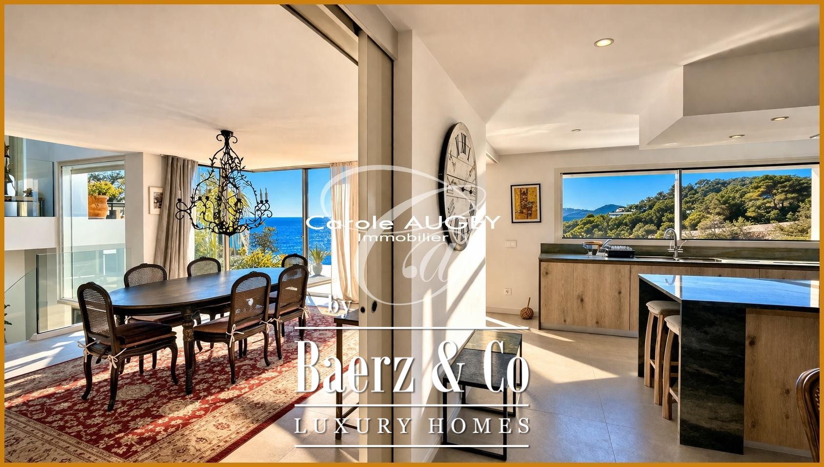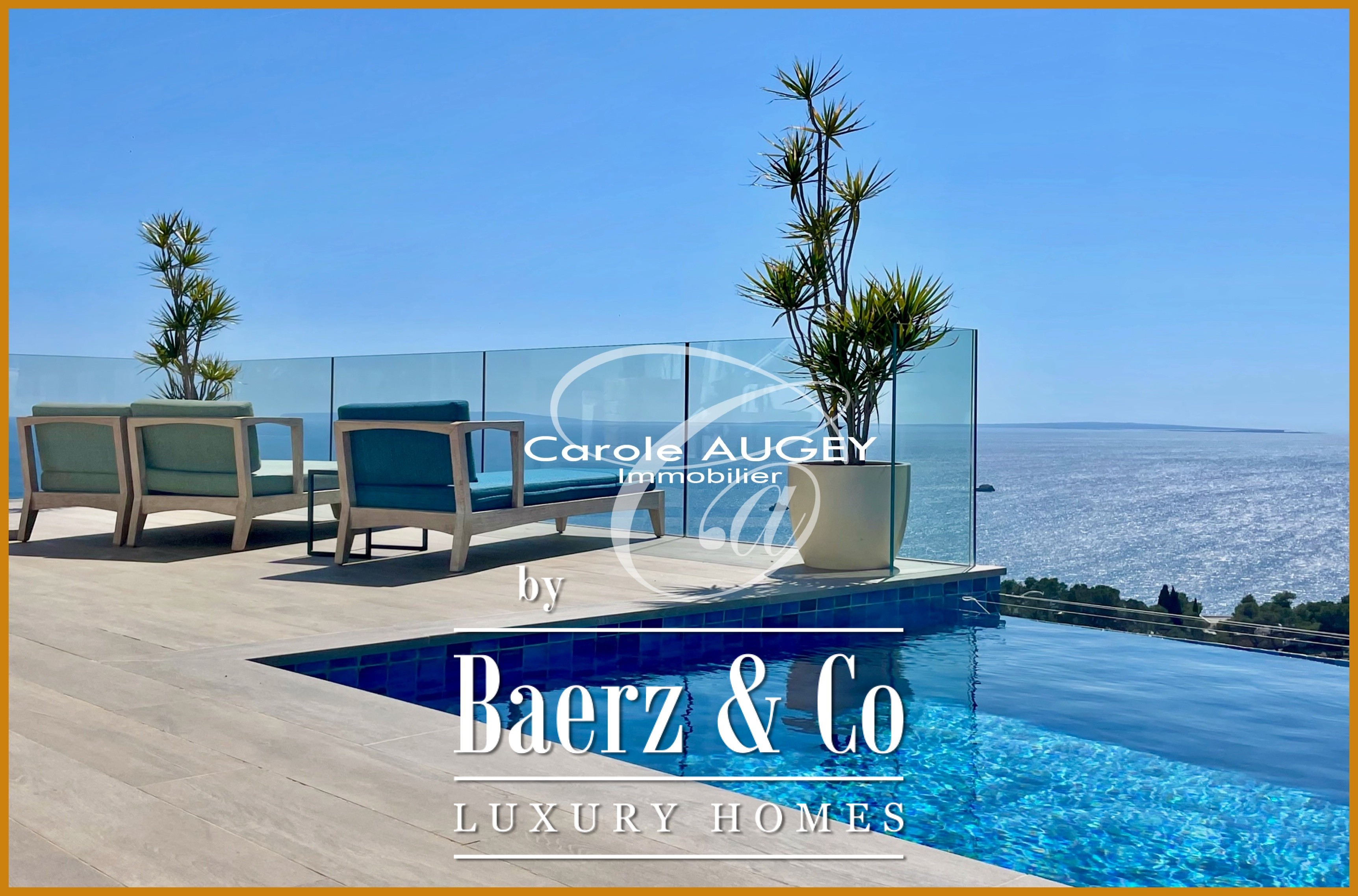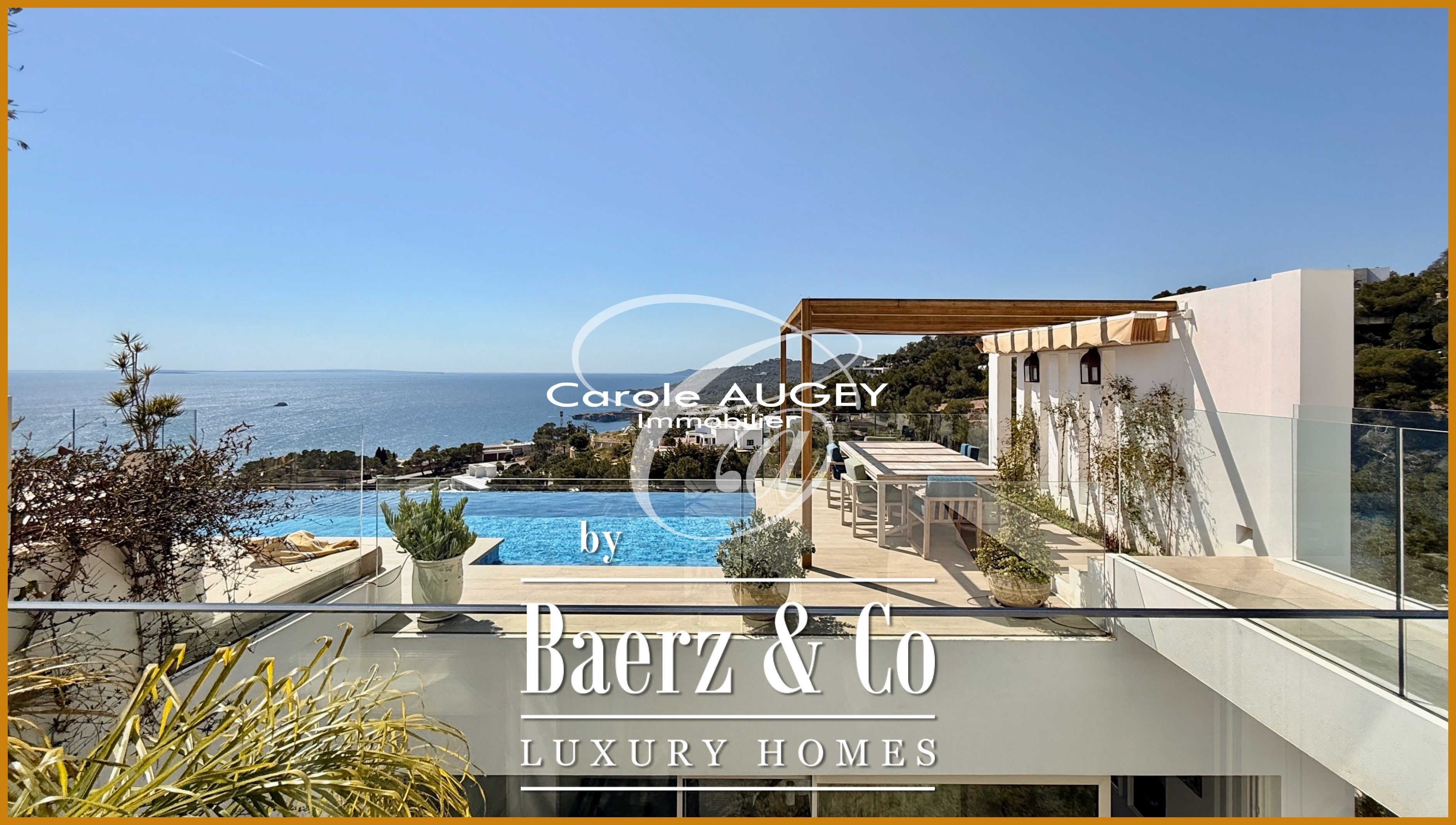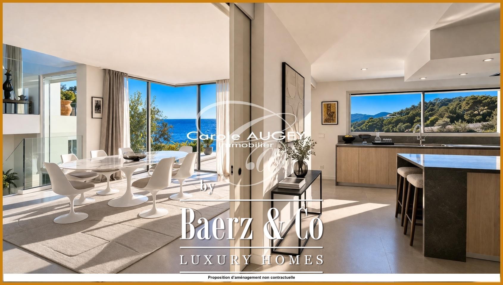 Totalmente reconstruida y finalizada en 2023, la villa exhibe un diseño contemporáneo refinado en sus 345 m² habitables, con un total construido superior a 400 m² en una parcela de 1.398 m². Cinco suites, incluido un estudio con acceso independiente, garantizan privacidad y fluidez en la circulación. Ventanales de suelo a techo, amplias terrazas y una impactante chimenea XXL de doble cara definen el salón principal, mientras la cocina completamente equipada se integra a la perfección con las áreas exteriores.