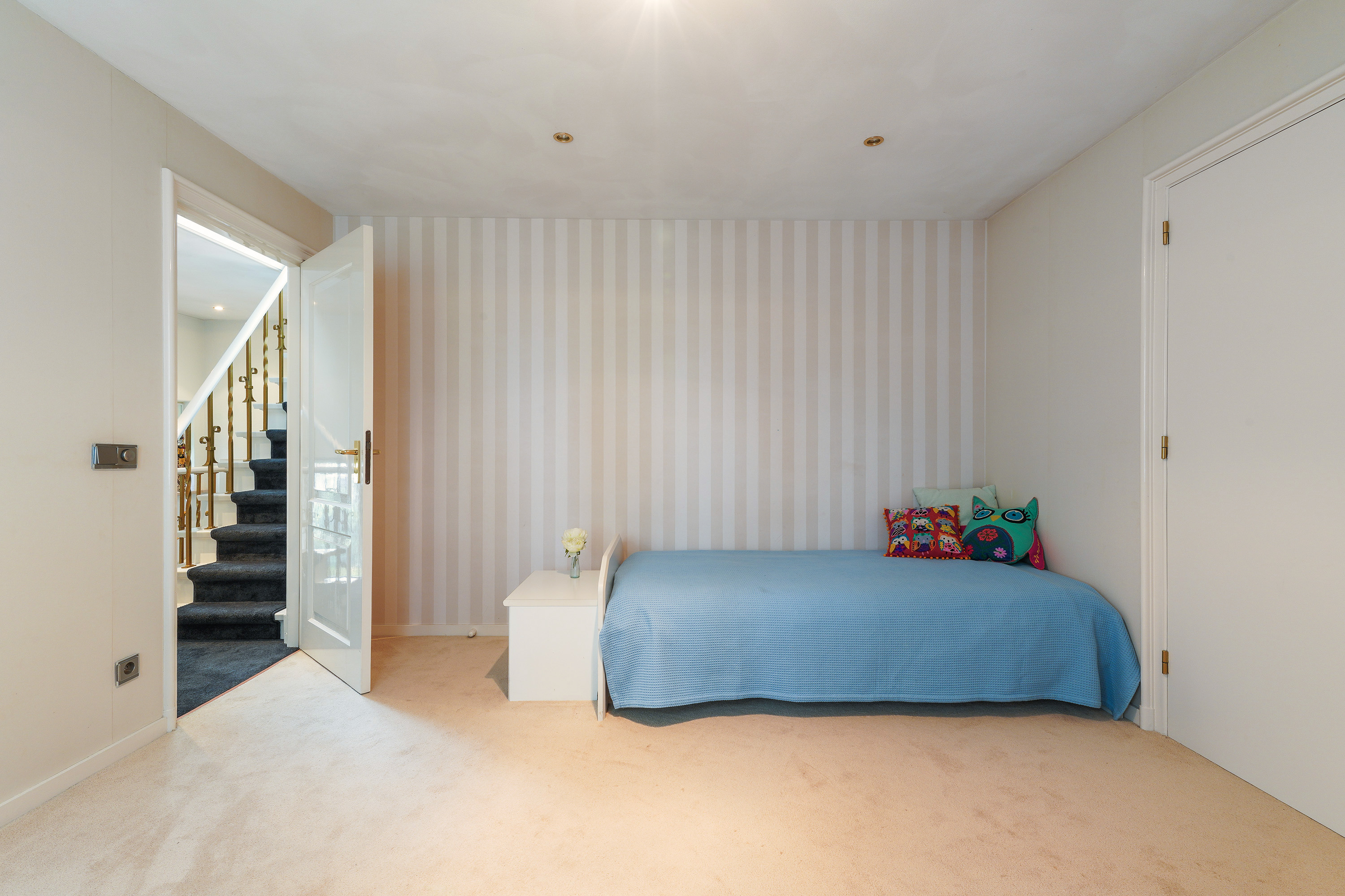 La segunda planta revela dos dormitorios adicionales, cuyas dimensiones se ven realzadas por ventanas en el techo que aportan luz natural. Soluciones de almacenamiento discretas completan la cuidada distribución.