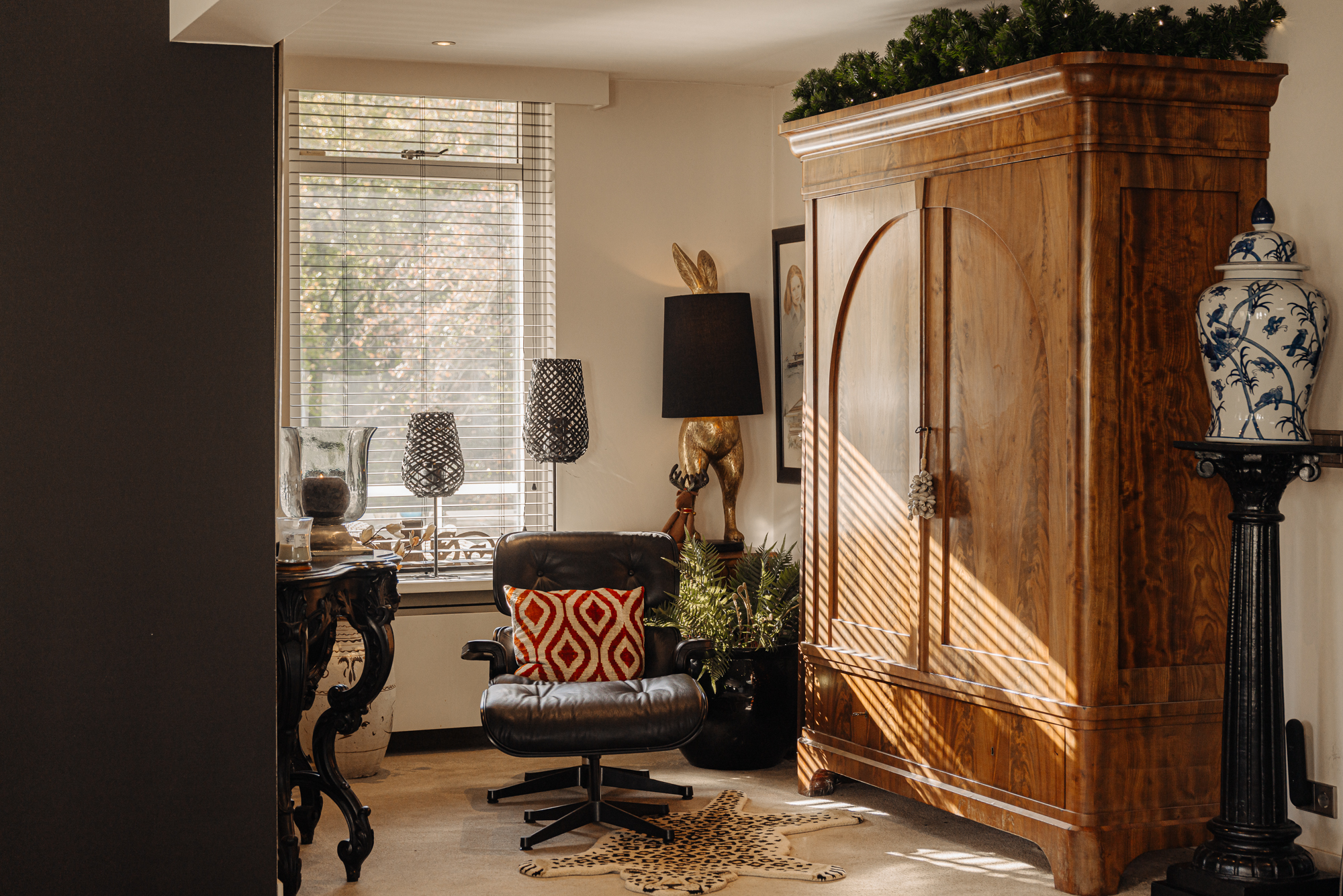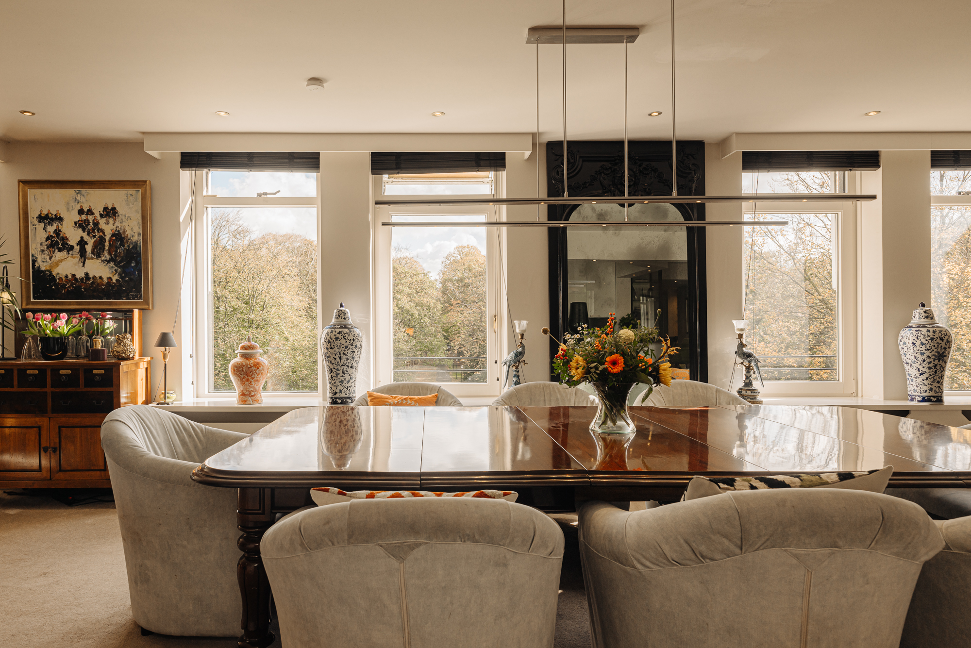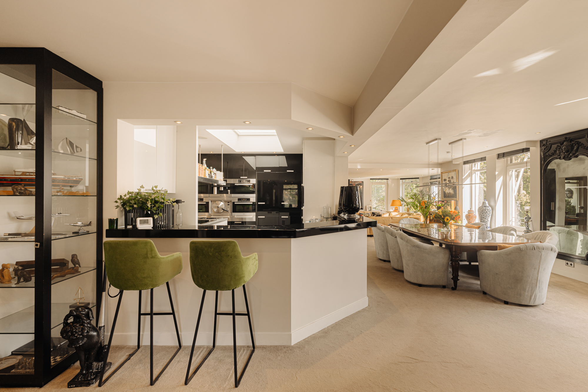 El ático Wassenaar se encuentra en el tranquilo y verde entorno de la finca Rust en Vreugd, ofreciendo 264 m² de vivienda en la tercera planta de un discreto complejo de apartamentos. Este ático fue rediseñado cuidadosamente en 2009, fusionando dos residencias en un único y amplio hogar realizado con estándares inigualables. El resultado es una vivienda definida por suelos de piedra natural, interiores a medida y una paleta de colores suaves, seleccionada por su durabilidad y serenidad.
